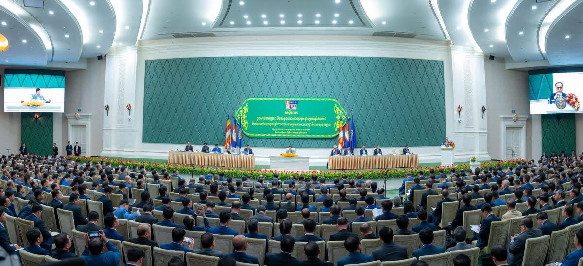 ភ្នំពេញ ៖ នៅរសៀលថ្ងៃទី១៤ ខែកុម្ភៈ ឆ្នាំ២០២៥ លោក ហ៊ុន ម៉ានី ឧបនាយករដ្ឋមន្ត្រី រដ្ឋមន្ត្រីក្រសួងមុខងារសាធារណៈ បានបញ្ជាក់ថា ៖ ខណៈនេះ សម្តេចមហាបវរធិបតី ហ៊ុន ម៉ាណែត នាយករដ្ឋមន្ត្រី នៃព្រះរាជាណាចក្រកម្ពុជា កំពុងដឹកនាំសន្និបាតបូកសរុបសកម្មភាព និងលទ្ធផលការងារចុះមូលដ្ឋានប្រចាំឆ្នាំ២០២៤ និងលើកទិសដៅការងារឆ្នាំ២០២៥ របស់ក្រុមការងាររាជរដ្ឋាភិបាលចុះមូលដ្ឋាន នៅវិមានសន្តិភាព។