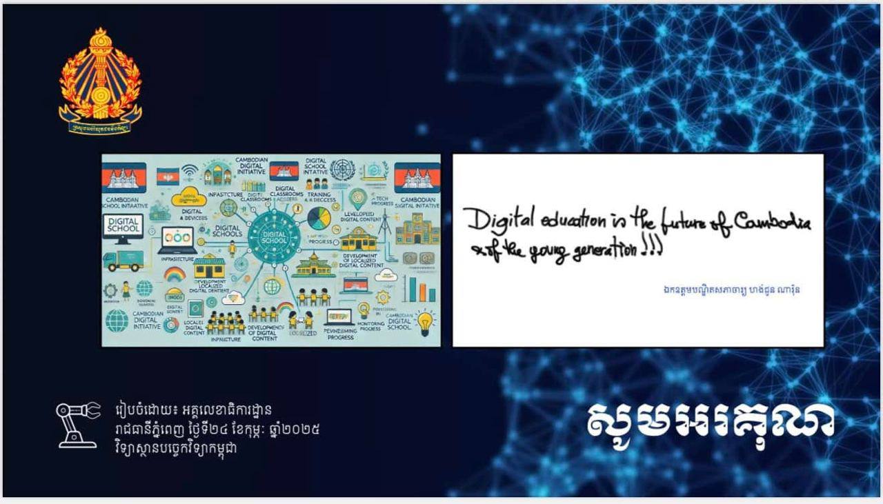 លោកឧបនាយករដ្ឋមន្ត្រី ហង់ជូន ណារ៉ុន បានគូសបញ្ជាក់ថា ក្រសួងនឹងដាក់ឱ្យប្រើប្រាស់សាលាឌីជីថលនៅថ្ងៃនេះ ដើម្បីឆ្លើយតបនឹងការប្រែប្រួលយ៉ាងឆាប់រហ័សនៃបច្ចេកវិទ្យាបញ្ញាសប្បនិមិត្ត AI មកលើប្រព័ន្ធអប់រំនៅក្នុងរយៈពេល២ទៅ៣ឆ្នាំខាងមុខ។