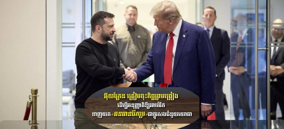 អន្តរជាតិ ៖ ប្រធានាធិបតី អ៊ុយក្រែន លោក វ៉្លូឌីមៀរ ហ្សិលលិនស្គី Volodymyr Zelensky នឹងមកបំពេញទស្សនកិច្ចនៅអាម៉េរិកនៅក្នុងសប្តាហ៍នេះ ដើម្បីពិនិត្យចុះកិច្ចព្រមព្រៀងផ្តល់សិទ្ធិដល់អាម៉េរិកទាញយកធនធានរ៉ែកម្រមកប្រើប្រាស់។នេះបើយោងតាមការអះអាងរបស់លោក ដូណាល ត្រាំ ប្រធានាធិបតីអាម៉េរិក នេះបើយោងតាមការចុះផ្សាយដោយសារព័ត៌មាន BBC។ កិច្ចព្រមព្រៀងនេះ គឺជាថ្នូរនៃសងនូវជំនួយយោធានៃអាម៉េរិកផ្តល់ជូនទៅអ៊ុយក្រែនក្នុងច្បាំងជាមួយរុស្ស៊ី។