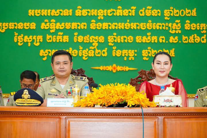 ខេត្តស្វាយរៀង៖ ព្រឹកថ្ងៃសុក្រ ២កេីត ខែផល្គុន ឆ្នាំរោង ឆស័ក ព.ស.២៥៦៨ ត្រូវនឹងថ្ងៃទី២៨ ខែកុម្ភៈ ឆ្នាំ២០២៥ នៅស្នងការដ្ឋាននគរបាលខេត្តស្វាយរៀង បានរៀបចំពិធី អបអរសាទរ ទិវាអន្តរជាតិនារី ៨មីនា ឆ្នាំ២០២៥ ក្រោមប្រធានបទ <<សិទ្ធិសមភាព និងភាពអង់អាចចំពោះស្ត្រី និងក្មេងស្រីគ្រប់រូប>> ក្រោមអធិបតីភាព លោកឧត្តមសេនីយ៍ទោ ពេជ្រ វីរៈ ស្នងការនគរបាលខេត្តស្វាយរៀង និងលោកជំទាវ អុិច ស្រីស្រស់។