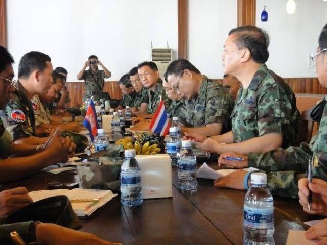 ភ្នំពេញ៖ រូបទាំងនេះបង្ហាញអំពីការចរចារវាងភាគីកម្ពុជាដែលដឹកនាំដោយរូបខ្ញុំ ក្នុងនាមជាមេបញ្ជាការរងកងទ័ពជើងគោក ដោយមានការចូលរួមពីឯកឧត្តម ជា ម៉នអតីតមេបញ្ជាការយោធភូមិភាគទី៤ និងឯកឧត្តម ស្រី ឌឹក មេបញ្ជាការកងពលធំលេខ៣ ជាមួយភាគីកងទ័ពថៃដែលដឹកនាំដោយនាយសេនាធិកា កងទ័ពជើងគោកថៃ និងមានការចូលរួមពីថ្នាក់ដឹកនាំកងទ័ពថៃពាក់ព័ន្ធមួយចំនួនទៀត។