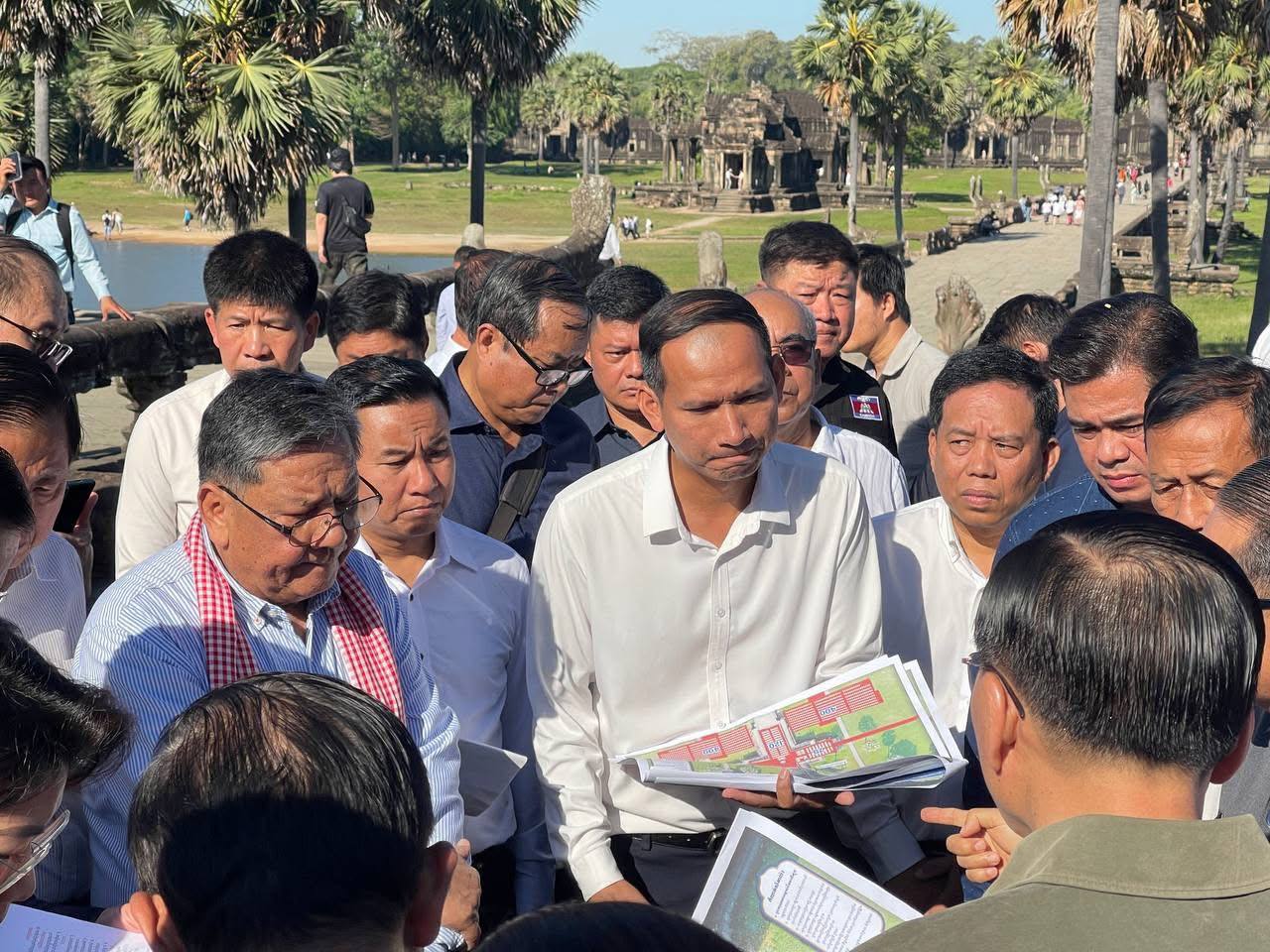 ខេត្តសៀមរាប ៖ នៅព្រឹកថ្ងៃទី១១ ខែមីនា ឆ្នាំ២០២៥នេះ សម្ដេច មហាមន្រ្ដី គុយ សុផល ឧបនាយករដ្ឋមន្ត្រី និងជារដ្ឋមន្ត្រីក្រសួងព្រះបរមរាជវាំង រួមនឹងថ្នាក់ដឹកនាំក្រសួងស្ថាប័នពាក់ព័ន្ធ បានអញ្ជើញចុះពិនិត្យទីតាំងត្រៀមរៀបចំ ព្រះរាជពិធីបួងសួងចម្រើនសេចក្ដីសុខ ជូនដល់ព្រះរាជាណាចក្រកម្ពុជា ក្រោមព្រះរាជាធិបតីដ៏ខ្ពង់ខ្ពស់បំផុត ព្រះករុណាព្រះបាទសម្តេចព្រះបរមនាថ នរោត្តម សីហមុនី ព្រះមហាក្សត្រ នៃព្រះរាជាណាចក្រកម្ពុជា រួមនឹងវត្តមានថ្នាក់ដឹកនាំជាន់ខ្ពស់កម្ពុជាជាច្រើនរូបទៀត ដែលព្រះរាជពិធីនេះ នឹងប្រារព្ធទៅនៅថ្ងៃទី១១-១២ ខែមេសា ឆ្នាំ២០២៥ នៅខាងមុខប្រាសាទអង្គរវត្ត។