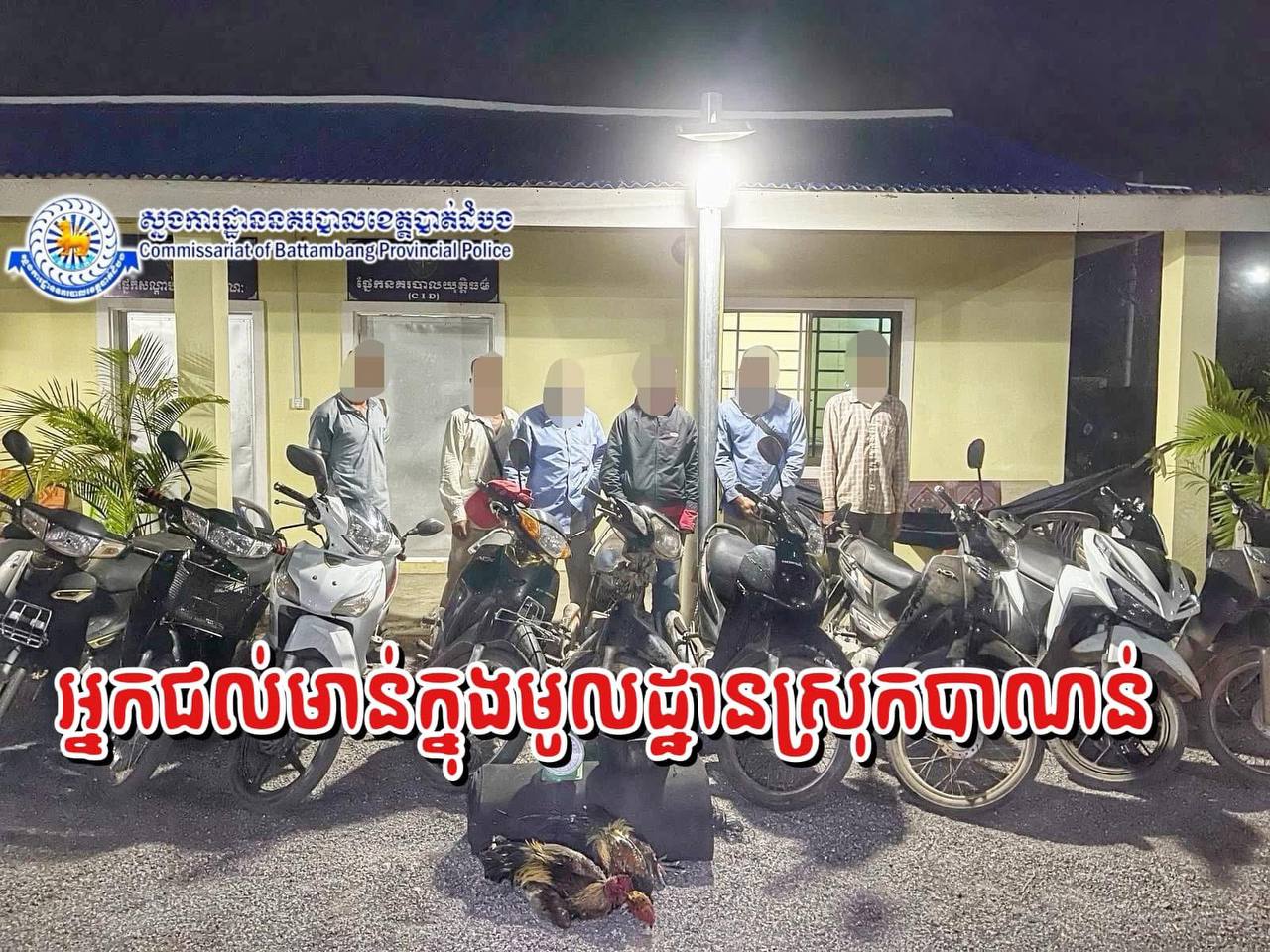 ខេត្តបាត់ដំបង៖ ស្នងការដ្ឋាននគរបាលខេត្តបាត់ដំបង នៅរសៀលថ្ងៃទី១១ ខែមីនា ឆ្នាំ២០២៥នេះ បានឱ្យដឹងថា កម្លាំងជំនាញ នៃអធិការដ្ឋាននគរបាលស្រុកបាណន់ ដឹកនាំដោយលោកវរសេនីយ៍ទោ ហេង បារាំង អធិការនគរបាលស្រុកបាណន់ កាលពីរសៀលថ្ងៃទី១១ខែមីនា បានចុះបង្រ្កាបករណីលេងល្បែងស៊ីសងដោយខុសច្បាប់ (ជល់មាន់) ០១លើក នៅចំណុចទួលធ្នង់ ស្ថិតក្នុងភូមិស្វាយព្រៃ ឃុំកន្ទឺ១ ស្រុកបាណន់ ខេត្តបាត់ដំបង ជាក់ស្ដែងកម្លាំងសមត្ថកិច្ចជំនាញ បាននាំខ្លួនអ្នកលេងល្បែងស៊ីសងដោយខុសច្បាប់ ០៦នាក់ យកមកអនុវត្តតាមច្បាប់។