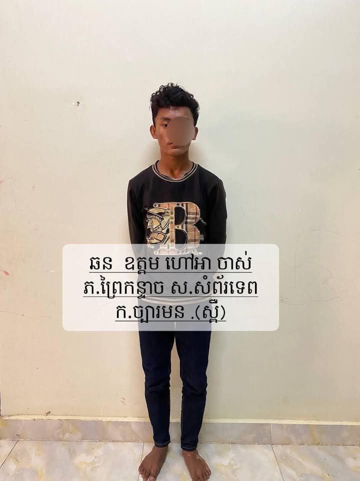 សមត្ថកិច្ចចាប់បានជនសង្ស័យទាំង២មានឈ្មោះ ១- ឈ្មោះ ឆន ឧត្តម ហៅចាស់ ភេទប្រុស អាយុ១៧ឆ្នាំ នៅភូមិព្រៃកន្ទាច សង្កាត់សុព័រទេព ក្រុងច្បាររមននិង ២- ឈ្មោះ អ៊ំ សុភាព ភេទប្រុស អាយុ២០ឆ្នាំ នៅភូមិថ្លុកឈើទាល សង្កាត់សុព័រទេព ក្រុងច្បារមន ។