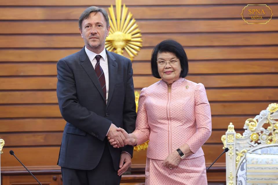 ភ្នំពេញ ៖ សម្តេចមហារដ្ឋសភាធិកាធិបតី ឃួន សុដារី ប្រធានរដ្ឋសភានៃព្រះរាជាណាចក្រកម្ពុជា នៅព្រឹកថ្ងៃទី២០ ខែឧសភា ឆ្នាំ២០២៥ បានអនុញ្ញាតជូន លោក ធីប័រ បាឡូកឌី (Tibor Baloghdi) ឯកអគ្គរដ្ឋទូតនៃប្រទេសហុងគ្រី ប្រចាំព្រះរាជាណាចក្រកម្ពុជា ដែលមាននិវេសនដ្ឋាននៅទីហាណូយ ប្រទេសវៀតណាម ចូលជួបសម្តែងការគួរសម និងពិភាក្សាការងារ នៅវិមានរដ្ឋសភា។