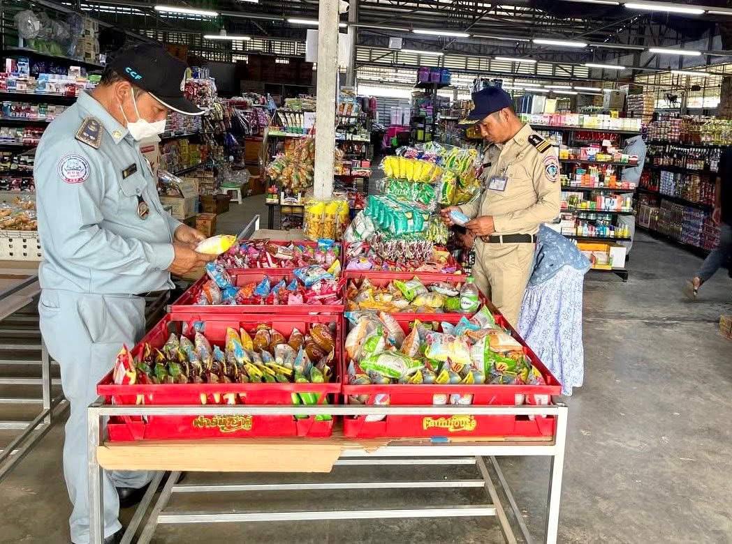 ខេត្តបាត់ដំបង៖ លោកឧត្តមសេនីយ៍ទោ ដាញ់ អេងប៊ុនចាន់ ស្នងការនៃស្នងការដ្ឋាននគរបាលខេត្តបាត់ដំបង បានឱ្យដឹងថា មន្រ្តីជំនាញសាខា ក.ប.ប. ខេត្តបាត់ដំបងសហការជាមួយសមត្ថកិច្ចចម្រុះខេត្តបាត់ដំបង បានចុះត្រួតពិនិត្យទំនិញ ឧបភោគ បរិភោគ និងទំនិញវេចខ្ចប់ស្រាប់ តាមផ្ទះ ម៉ាត និងតូបលក់ទំនិញក្នុងផ្សារ ចំនួន០២លើក រកឃើញរកឃើញទំនិញខូចគុណភាព និងហួសកាលបរិច្ឆេទប្រើប្រាស់ជាង៩៧គីឡូក្រាម។