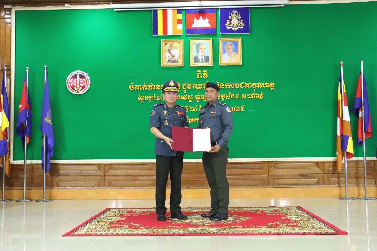 កំពង់ធំ ៖ នៅព្រឹកថ្ងៃអង្គារ៍ ១៤រោច ខែជេស្ឋ ឆ្នាំម្សាញ់ សប្តស័ក ព.ស២៥៦៩ ត្រូវនិងថ្ងៃទី២៤ ខែមិថុនា ឆ្នាំ២០២៥ លោកឧត្តមសេនីយ៍ត្រី មាស យ៉ត មេបញ្ជាការ កងរាជអាវុធហត្ថខេត្តកំពង់ធំ បានអញ្ជើញជាអធិបតីភាព ក្នុងពិធីបំពាក់ឋានន្តរសក្តិ ជូនយោធិន នៃកងរាជអាវុធហត្ថខេត្តកំពង់ធំ ចំនួន ២៣នាក់ ។