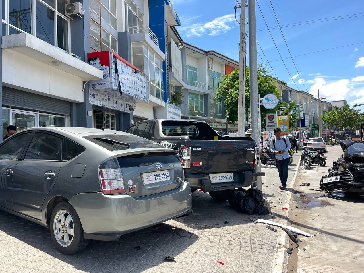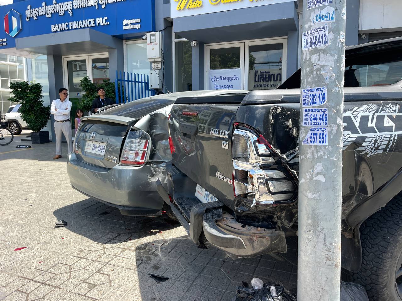 យោងតាមប្រភពព័ត៌មានពីកន្លែងកើតហេតុបានអោយដឹងថា មុនពេលកើតហេតុ មានរថយន្ដស៊េរីទំនើបមួយគ្រឿងម៉ាក chevrolet tracker ពណ៌ខ្មៅ ពាក់ផ្លាកលេខភ្នំពេញ2CD- 7059 បើកបរដោយបុរសម្នាក់ធ្វើដំណើរតាមបណ្ដោយផ្លូវលេខ១៩៦២ ក្នុងទិសដៅពីកើតទៅលិចដោយល្បឿនមធ្យម ខណៈពេលមកដល់ចំណុចកើតហេតុ ស្រាប់តែឃើញរថយន្ដខាងលើ រេចង្កូតទៅបុករថយន្ដ ម៉ាក Toyota Hilux និងរថយន្ដម៉ាក Toyota Prius ដែលចតលើខឿនផ្លូវបណ្ដាលអោយបោកផ្ទប់ជាមួយនឹងបង្គោលភ្លើងរងការខូចខាតផ្នែកពីខាងក្រោយ ចំណែករថយន្ដបង្កខូចខាតមួយកំណាត់មុខខាងស្ដាំធ្ងន់ធ្ងរ ។