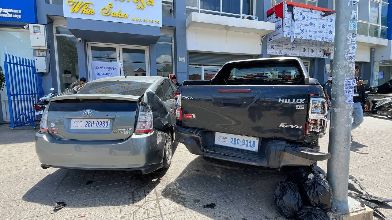 ភ្នំពេញ៖ បុរសម្នាក់បើករថយន្ដសុខៗ ស្រាប់តែងងឹតមុខរេចង្កូតទៅបុករថយន្ដ០២គ្រឿងដែលចតលើខឿនផ្លូវបោកផ្ទប់នឹងបង្គោលភ្លើង រងការខូចខាតរថយន្តមួយកំណត់មុខ តែសំណាងល្អក្នុងករណីនេះគ្មានអ្នករបួសឡើយ ។