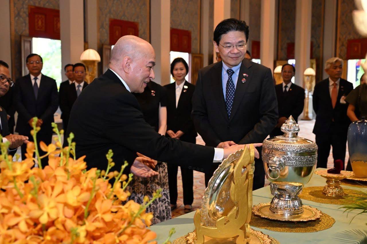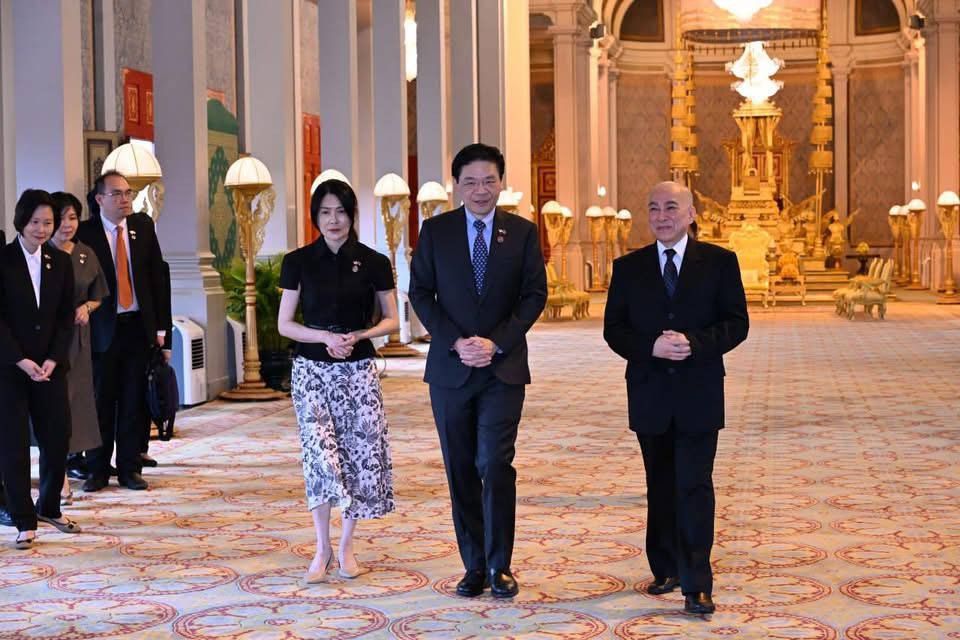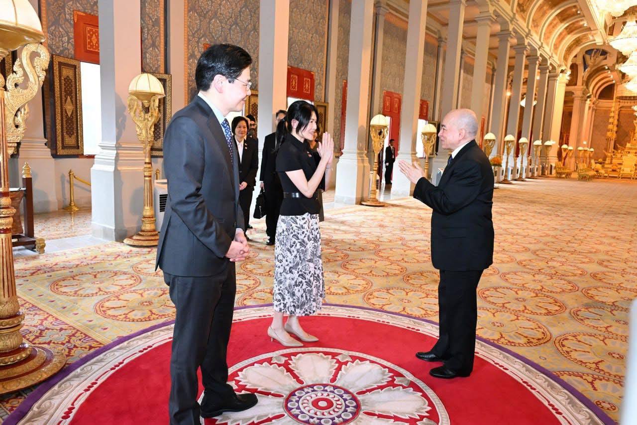 ភ្នំពេញ ៖ ក្នុងដំណើរទស្សនកិច្ចនៅរសៀលថ្ងៃទី០២ ខែកក្កដា ឆ្នាំ២០២៥នេះ លោក Lawrence Wong នាយករដ្ឋមន្ត្រី និងជារដ្ឋមន្ត្រីក្រសួងហិរញ្ញវត្ថុសិង្ហបុរី ដែលបំពេញទស្សនកិច្ចនៅកម្ពុជា បានចូលបង្គំគាល់ ព្រះករុណា ព្រះបាទ សម្តេចព្រះបរមនាថ នរោត្តម សីហមុនី ព្រះមហាក្សត្រកម្ពុជា នៅព្រះបរមរាជវាំង ។