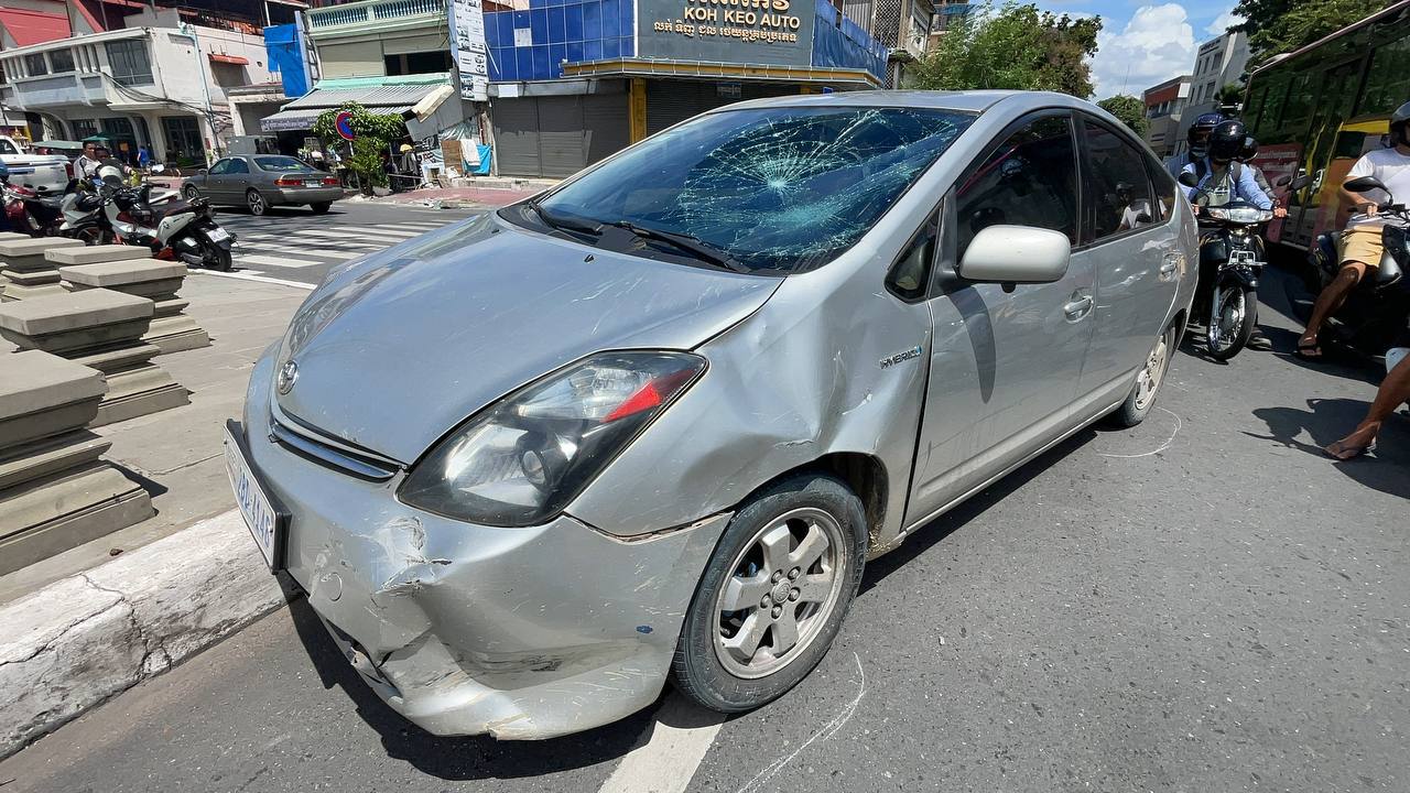 ភ្នំពេញ៖ រថយន្ដម៉ាកតូយ៉ូតា ព្រូសមួយគ្រឿងបើកខ្វះការប្រុងប្រយ័ត្ន ទៅបុកស្ត្រីម្នាក់ជិះម៉ូតូឆ្លងផ្លូវបំបែកជាបួនចំពីចំហៀងពេញទំហឹងបណ្ដាលឱ្យម្ចាស់ម៉ូតូខ្ទប់នឹងកញ្ចក់ រថយន្ដរងរបួសធ្ងន់ ចំណែកម៉ូតូនិងរថយន្ដរងការខូចខាត ។