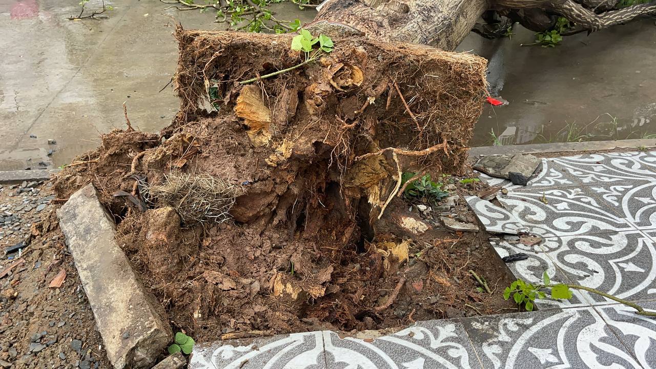 យោងតាមព័ត៌មានអោយដឹងថា នៅមុនពេលកើតហេតុភ្លៀងបានបង្អុលធ្លាក់និងមានខ្យល់កន្ត្រាក់បោកបក់ ខណៈនោះដើមឈើមួយដើមខាងលើដែលពុកឬសបានដួលរលំកាត់ទទឹងផ្លូវនិងទាក់ខ្សែភ្លើង ខ្សែកាបនិងអ៊ីនធើណេត តែពុំបណ្ដាឲ្យ មនុស្សរងរបួសឡើយ។ ដើមឈើដែលដួលរលំនោះពុំត្រូវគេស្គាល់ថា ជាដើមឈើអ្វីនោះឡើយមានទំហំធំបែកមែកសាខា ។