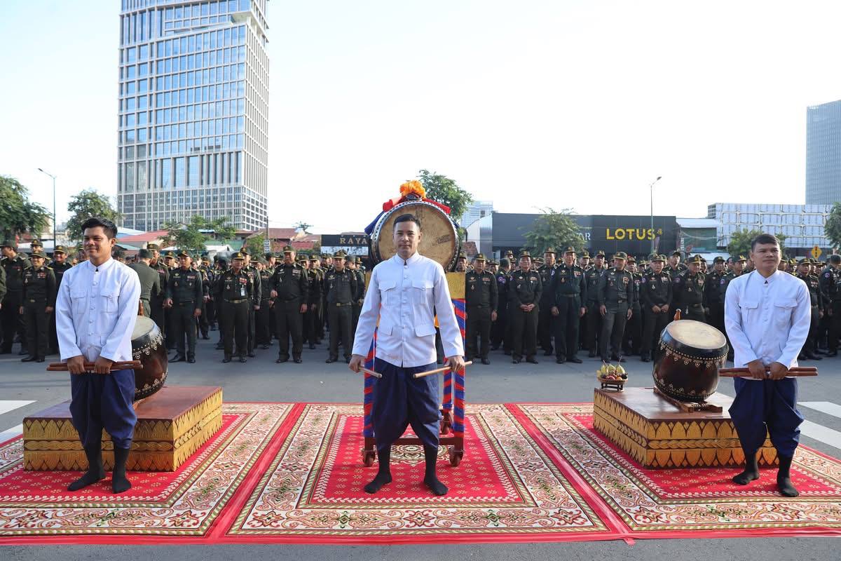 ភ្នំពេញ ៖ ថ្ងៃអាទិត្យ ៣ រោច ខែអាសាឍ ឆ្នាំម្សាញ់ សប្តស័ក ពុទ្ធសករាជ ២៥៦៩ ត្រូវនឹងថ្ងៃទី១៣ ខែកក្កដា ឆ្នាំ២០២៥តំណាងដ៏ខ្ពង់ខ្ពស់ លោក នាយឧត្តមសេនីយ៍ ទៀ សីហា ឧបនាយករដ្ឋមន្ត្រី រដ្ឋមន្ត្រីក្រសួងការពារជាតិ លោក នាយឧត្តមសេនីយ៍ ចាយ សាំងយុន រដ្ឋលេខាធិការប្រចាំការ ក្រសួងការពារជាតិ បានដឹកនាំនាយទាហាន នាយទាហានរង និងពលទាហាន នៃក្រសួងការពារជាតិ ចូលរួមវាយគង ទូងស្គរ ទះប៉ោត និងគោះត្រដោក ដើម្បីអបអរសាទរការចុះបញ្ជី បូជនីយដ្ឋានចងចាំនៃកម្ពុជា ពីទីតាំងឧក្រិដ្ឋកម្មមកជាមណ្ឌលផ្សះផ្សា និងសន្តិភាព ក្នុងបញ្ជីបេតិកភណ្ឌពិភពលោក ដែលប្រព្រឹត្តទៅនៅ មុខទីស្តីការក្រសួងការពារជាតិ។