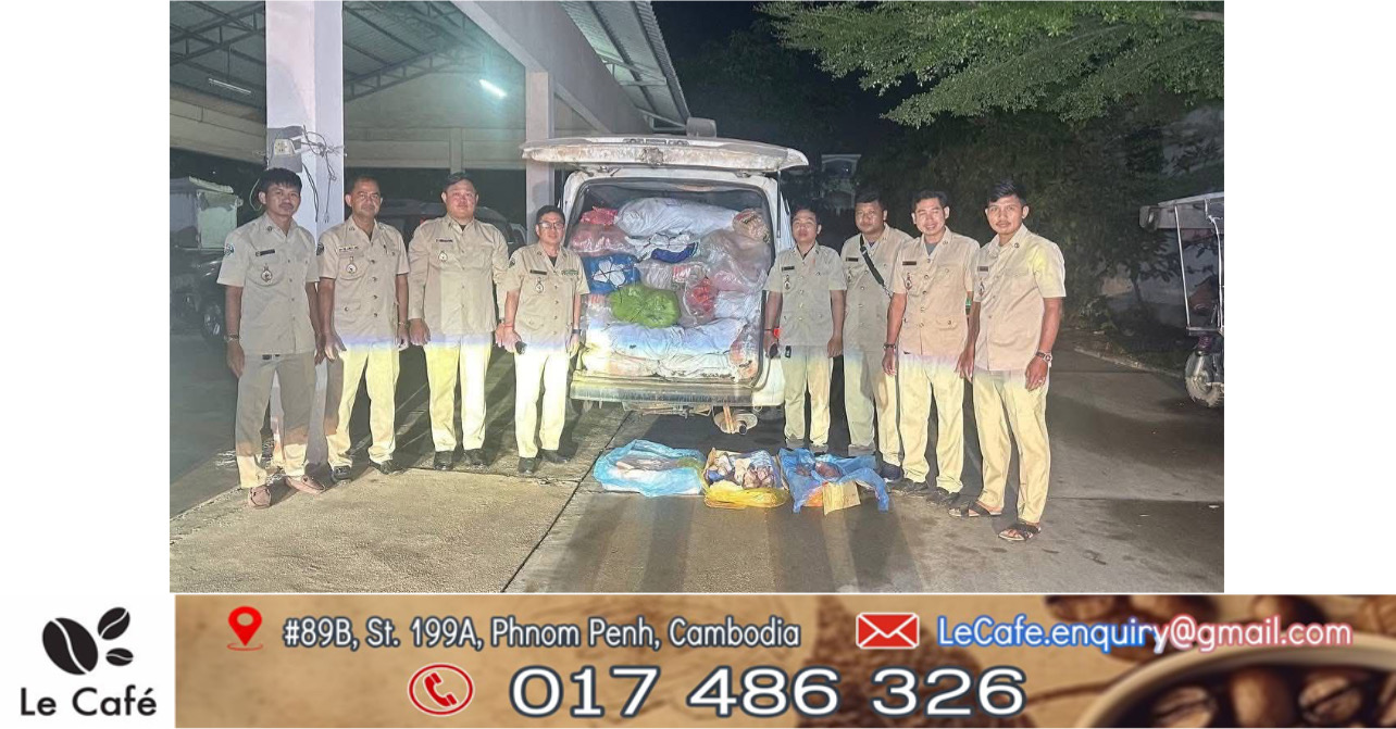 ខេត្តកំពង់ចាម៖ កាលយប់ថ្ងៃទី២១ ខែកក្កដា ឆ្នាំ ២០២៥ ក្រុមអន្តរាគមន៍បង្ក្រាបបទល្មើសចលនាសត្វ នៃអគ្គនាយកដ្ឋានសុខភាពសត្វ និងផលិតកម្មសត្វ បានសហការជាមួយការិយាល័យផលិតកម្ម និងបសុព្យាបាលខេត្តកំពង់ចាម ចុះឃាត់ចាប់រថយន្ត ១ គ្រឿង ដឹកសាច់សត្វបង្កកសរុបចំនួន ៣៧៩៨ គីឡូក្រាម។