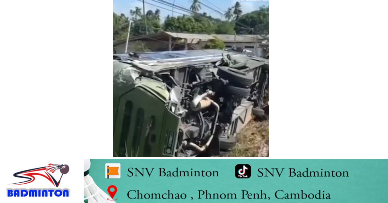 ប្រទេសថៃ៖ នៅរសៀលថ្ងៃទី ២៤ ខែ កក្កដា នេះ មានយ៉ាងហើចណាស់ក្រុមយោធាថៃប្រមាណ ១៩នាក់បានរងរបួសធ្ងន់ស្រាល និងមានម្នាក់បានស្លាប់បាត់បង់ជីវិតក្រោយពី តៃកុងឡានស្ទូចថៃកង់១០ដែលតៃកុង ងងុយដេក រេចង្កូតទៅបុកពីក្រោយរថយន្តក្រុមយោធាថៃដែលចេញពីជំរុំហ្វឹកហ្វឺនសង្គ្រាម។