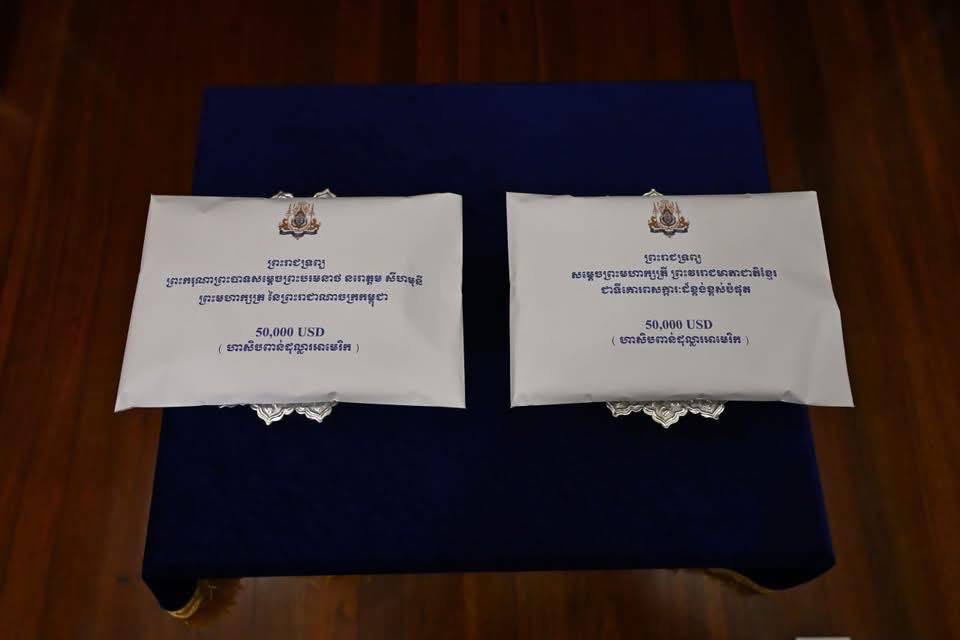ភ្នំពេញ ៖ ព្រះករុណា ព្រះមហាក្សត្រ និងសម្តេចម៉ែ ព្រះរាជទានព្រះរាជទ្រព្យ ចំនួន១០ម៉ឺនដុល្លារ ដល់វីរកងទ័ពតស៊ូប្រយុទ្ធ និងពលីនៅសមរភូមិ