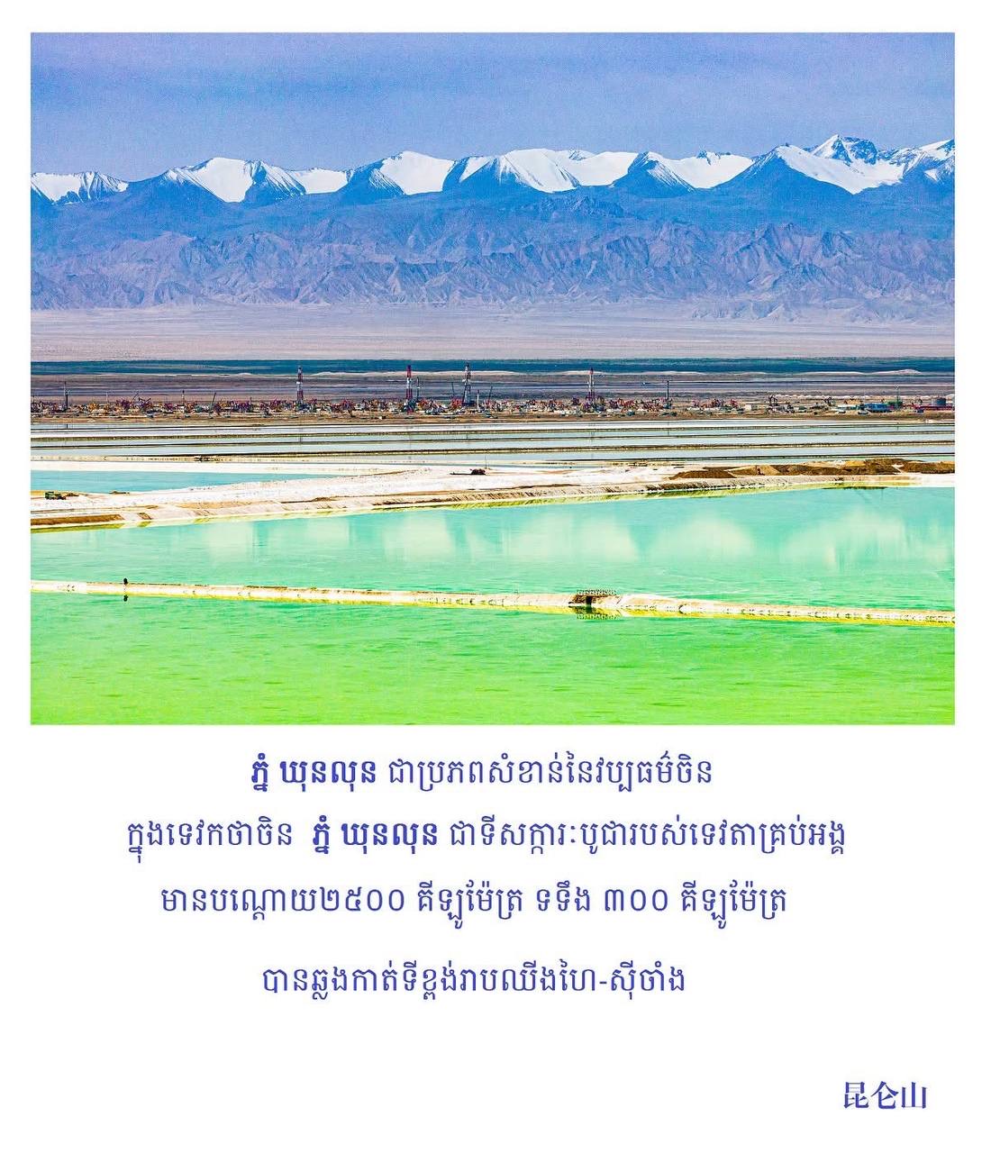 គេហទំព័រ «CCFR China state-controlled media » ភ្នំ ឃុនលុន ជា ប្រភព សំខាន់ នៃ វប្បធម៌ ចិន ក្នុង ទេវកថា ចិន ភ្នំ ឃុនលុន ជា ទីសក្ការៈបូជារបស់ទេវតាគ្រប់អង្គ ភ្នំ ឃុនលុន មានបណ្តោយ ២៥០០ គីឡូម៉ែត្រ ទទឹង ៣០០ គីឡូម៉ែត្រ បាន ឆ្លងកាត់ ទីខ្ពង់រាប ឈីងហៃ-ស៊ីចាំង ។