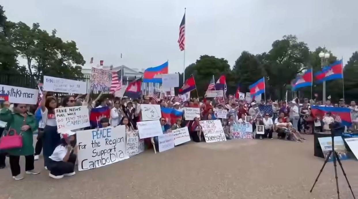 សហរដ្ឋអាម៉េរិក ៖ នៅក្នុងបុព្វហេតុជាតិមាតុភូមិ ដោយមិនប្រកាន់និន្នាការនយោបាយ ពលរដ្ឋខ្មែរដែលរស់នៅសហរដ្ឋអាមេរិក នៅថ្ងៃទី២ ខែសីហា ឆ្នាំ២០២៥ បានប្រមូលផ្តុំ និងជួបជុំគ្នានៅមុខសេតវិមាន អមដោយការលើកបដា ដើម្បីថ្លែងអំណរគុណ និងស្នើសុំឯកឧត្តមប្រធានាធិបតី ដូណាល់ ត្រាំ ជួយដល់ប្រទេសកម្ពុជា មិនឱ្យមានការឈ្លានពានជាថ្មី។
