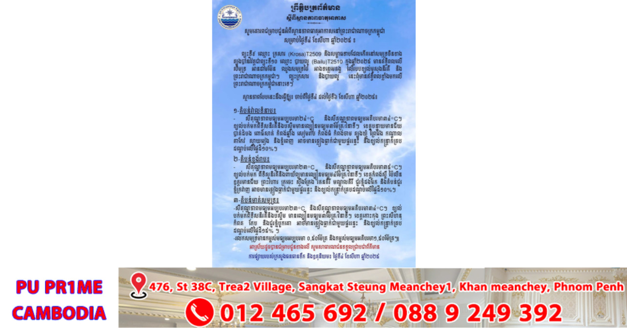 អាស្រ័យដូចបានជម្រាបជូនខាងលើ សូមសាធារណជនទទួលជ្រាបជាព័ត៌មាន៕