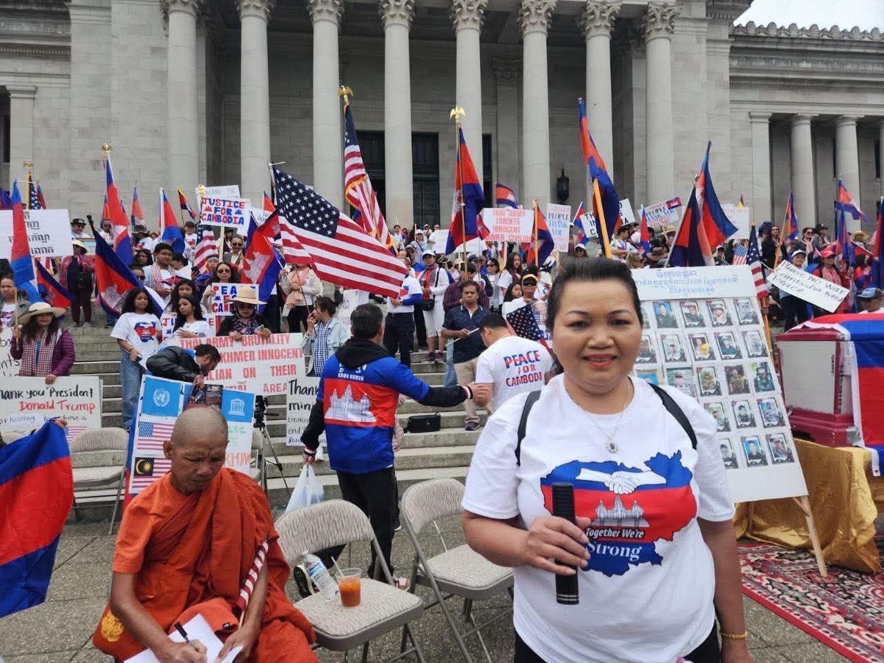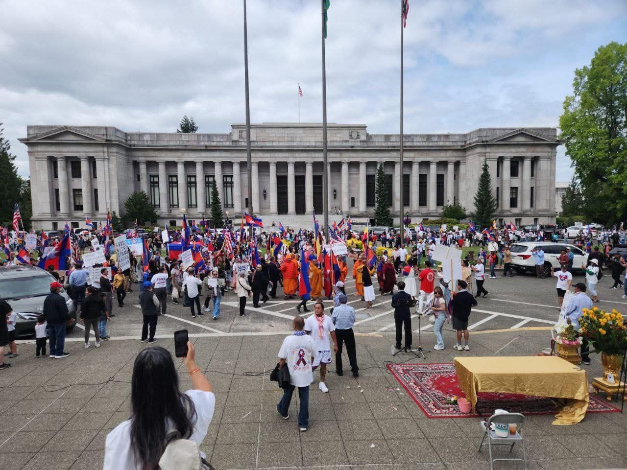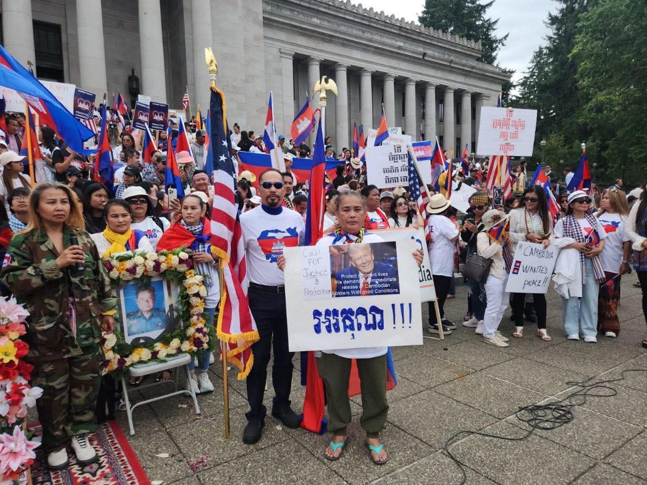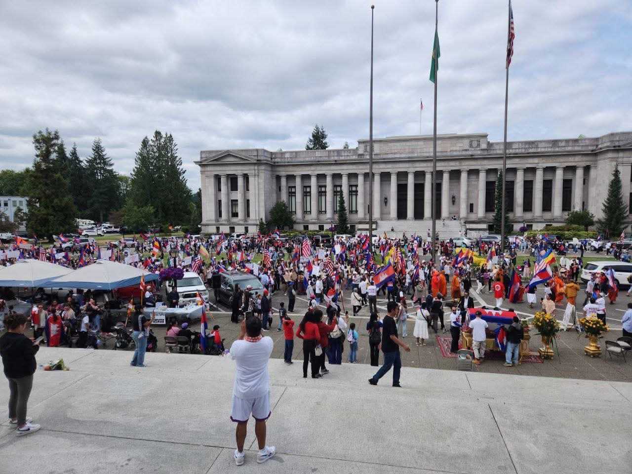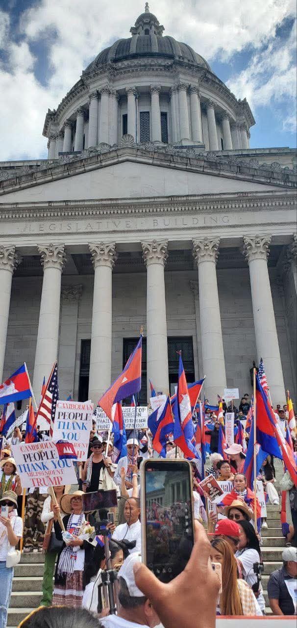ទីក្រុងវ៉ាស៊ីនតោន ៖ ប្រជាពលរដ្ឋខ្មែរ និងព្រះសង្ឃរស់នៅក្នុងរដ្ឋវ៉ាស៊ីនតោនស្ទេត សហរដ្ឋអាមេរិក ចំនួនប្រមាណ១,៨០០អង្គ/នាក់ កាលពីចុងសប្ដាហ៍នេះ បានធ្វើការជួបជុំមហាគ្រួសារខ្មែរនៅមុខ Washington State Capitol Building and Campus ដើម្បីសម្តែងការថ្លែងអំណរអរគុណប្រធានាធិបតីសហរដ្ឋអាមេរិក ដូណាល់ ត្រាំ ដែលបានជួយសម្របសម្រួល ឲ្យមានបទឈប់បាញ់ក្នុងជម្លោះព្រំដែនរវាងកងទ័ពថៃ-កម្ពុជា។