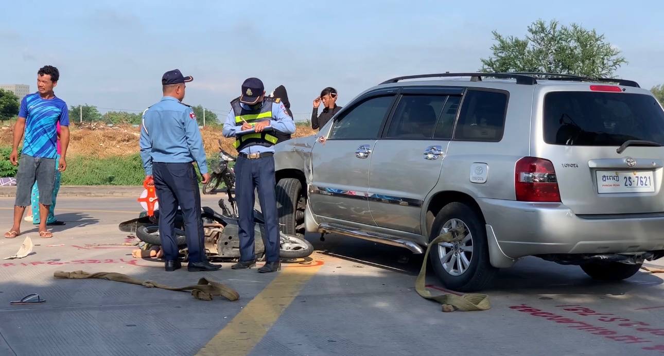 តាមនប្រភពបានឲ្យដឹងថា គ្រោះថ្នាក់ចរាចរណ៍នេះបានកើតឡើងរវាងម៉ូតូម៉ាកស៊ុយស៊ូគីនិច ពណ៌សលាយខៀវ ពាក់ផ្លាកលេខ ភ្នំពេញ 1FG-5224 និងរថយន្តម៉ាកហាយឡែនឌ័រពាក់ស្លាកលេខភ្នំពេញ2S-7621។