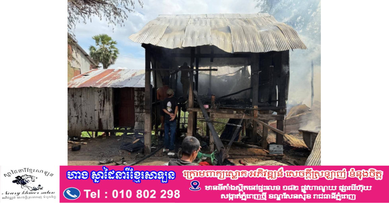 ខេត្តកណ្ដាល៖ ផ្ទះឈើចំនួន ២ខ្នងនៅក្រុងតាខ្មៅបានឆេះខ្ទេចខ្ទីទាំងស្រុង បន្ទាប់ពីមានករណីឆ្លងចរន្តអគ្គិសនី។ ហេតុការណ៍អគ្គិភ័យនេះបានកើតឡើងនៅថ្ងៃទី១១ សីហា ២០២៥ វេលាម៉ោង ៩និង១៥នាទីព្រឹក នៅភូមិកំពង់ព្រីង សង្កាត់សិត្បូ ក្រុងតាខ្មៅ។