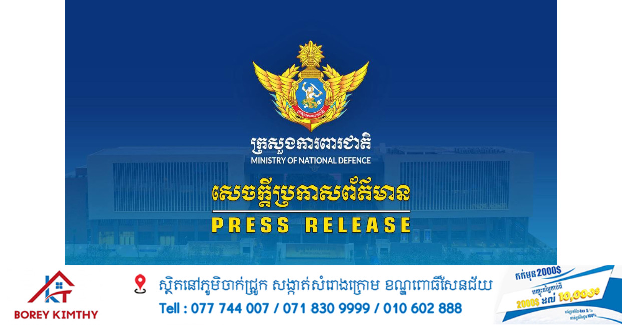 ក្រសួងការពារជាតិ នៃព្រះរាជាណាចក្រកម្ពុជា សូមច្រានចោលទាំងស្រុងចំពោះការចោទប្រកាន់ ដោយគ្មានមូលដ្ឋានច្បាស់លាស់របស់ភាគីថៃ ពាក់ព័ន្ធនឹងការរងរបួសរបស់ទាហានថៃ ដោយសារការផ្ទុះគ្រាប់មីន នៅតំបន់ប្រាសាទតាមាន់ធំ ក្នុងស្រុកបន្ទាយអំពិល ខេត្តឧត្តរមានជ័យ ព្រះរាជាណាចក្រ
