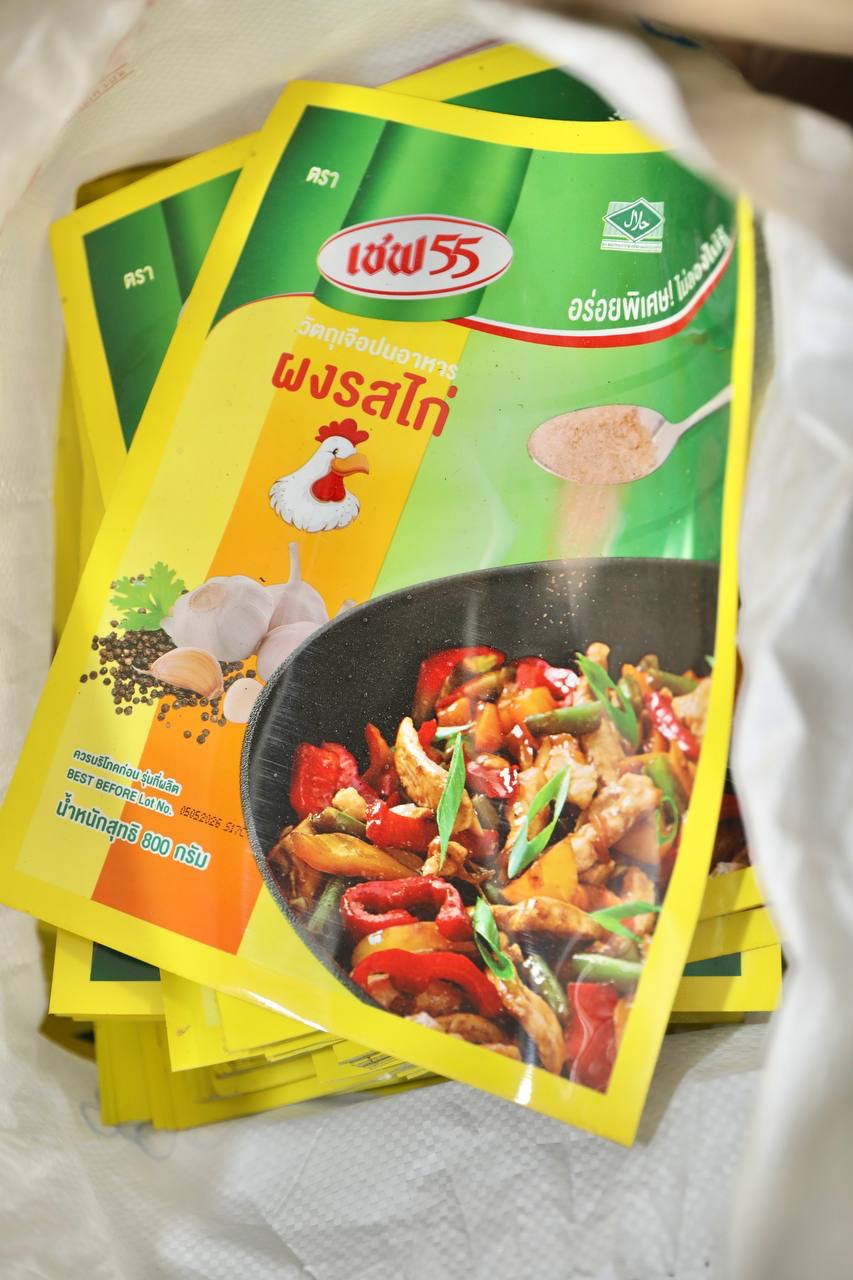 ក្នុងការឆែកឆេរត្រួតពិនិត្យជាក់ស្តែង សមត្ថកិច្ចបានរកឃើញនូវសម្ភារៈវត្ថុតាងដូចជា៖ ប៊ីចេង ម្សៅស៊ុបវេចខ្ចប់រួច រួមនឹងសម្បកថង់ សម្បកកេស សម្បកបាវ ម៉ាក ឆេហ្វ 55 ខុសច្បាប់ ប្រមាណជាង ៣០តោន, ម៉ាស៊ីនវាយកាលបរិច្ឆេទ ០១គ្រឿង, ម៉ាស៊ីនវេចខ្ចប់ធំ ០២គ្រឿង, ម៉ាស៊ីនវេចខ្ចប់តូច ០៣គ្រឿង, ម៉ាស៊ីនអ៊ុតកេស០២គ្រឿង, ម៉ាស៊ីនរ៉ៃ ០២គ្រឿង, រថយន្តដឹកទំនិញ ០៤គ្រឿង និងរ៉ឺម៉កសម្រាប់ដឹកទំនិញ ០៦គ្រឿង ។