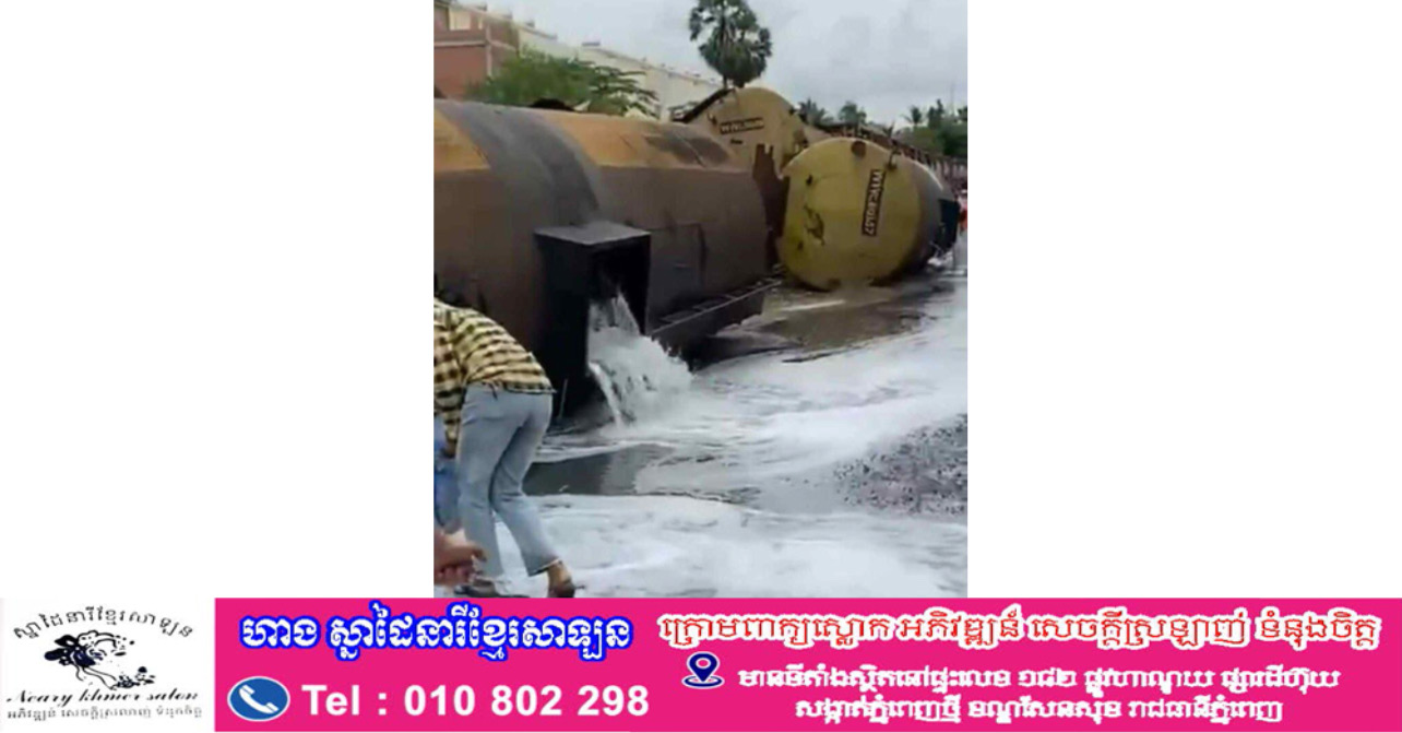 ខេត្តបាត់ដំបង ៖ រថភ្លើងដឹកប្រេងរបស់ក្រុមហ៊ុនតេលាកម្ពុជាបានរអិលធ្លាក់ក្រឡាប់ចាក់ប្រេងចោលអស់០៣ស៊ីទែន ក្នុងចំណោម០៤ស៊ីទែន ដែលធ្លាក់ចេញពីផ្លូវ កាលពីវេលាម៉ោងជាង១១ថ្ងៃត្រង់ថ្ងៃទី១៦ សីហា នៅក្នុងចន្លោះ សង្កាត់អូរចា និងសង្កាត់ទូលតាឯក ក្រុងបាត់ដំបង ។