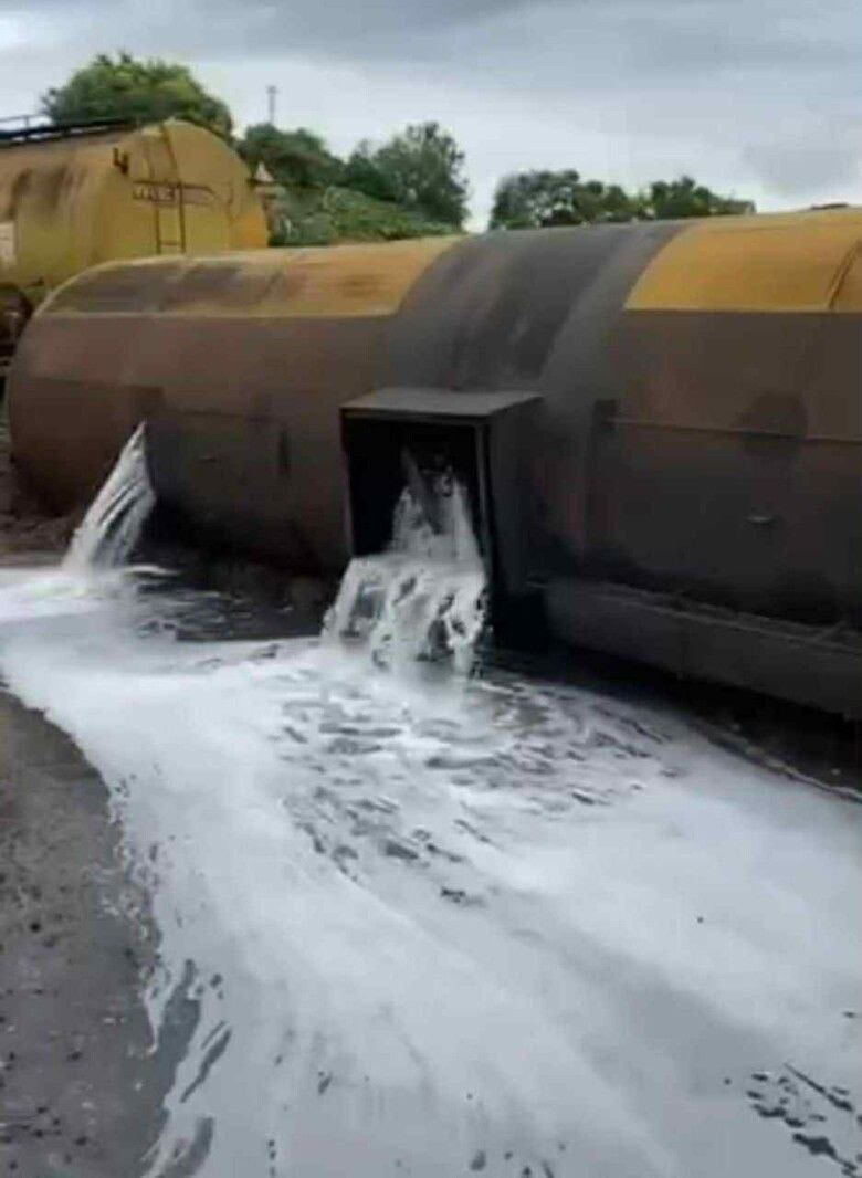 សមត្ថកិច្ចបានរាយការណ៍បឋមថា រថភ្លើង១ខ្សែអូសស៊ីទែនប្រេងរបស់ក្រុមហ៊ុនតេលាកម្ពុជា ធ្វើដំណើរពីភ្នំពេញឆ្លងកាត់បាត់ដំបង ឆ្ពោះទៅកាន់ខេត្តបន្ទាយមានជ័យ ។ សមត្ថកិច្ចបានប្រាប់ថា ពេលទៅដល់ចំណុចកើតហេតុ ស្រាប់តែតួរថភ្លើងរអិលធ្លាក់ចេញពីផ្លូវចំនួន០៤ស៊ីទែនដឹកប្រែងម៉ាស៊ូត តែមាន០៣ស៊ីទែនបានធ្លាយចេញប្រេងហូរពញដី និងចូលទឹក ។