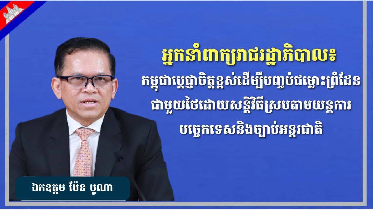 ភ្នំពេញ ៖ ថ្លែងនៅក្នុងសេចក្តីសង្ខេបព័ត៌មានប្រចាំថ្ងៃស្តីពី «លទ្ធផលនៃការអនុវត្តបទឈប់បាញ់រវាងកម្ពុជា-ថៃ» នៅវេលាម៉ោង៤ រសៀល ថ្ងៃទី១៧ ខែសីហា ឆ្នាំ២០២៥ លោក ប៉ែន បូណា អ្នកនាំពាក្យរាជរដ្ឋាភិបាល បានលើកឡើងអំពីគោលជំហរដ៏ម៉ឺងម៉ាត់របស់រាជរដ្ឋាភិបាលកម្ពុជាចំពោះជម្លោះព្រំដែនជាមួយប្រទេសថៃ ដែលមានខ្លឹមសារដូចតទៅ៖