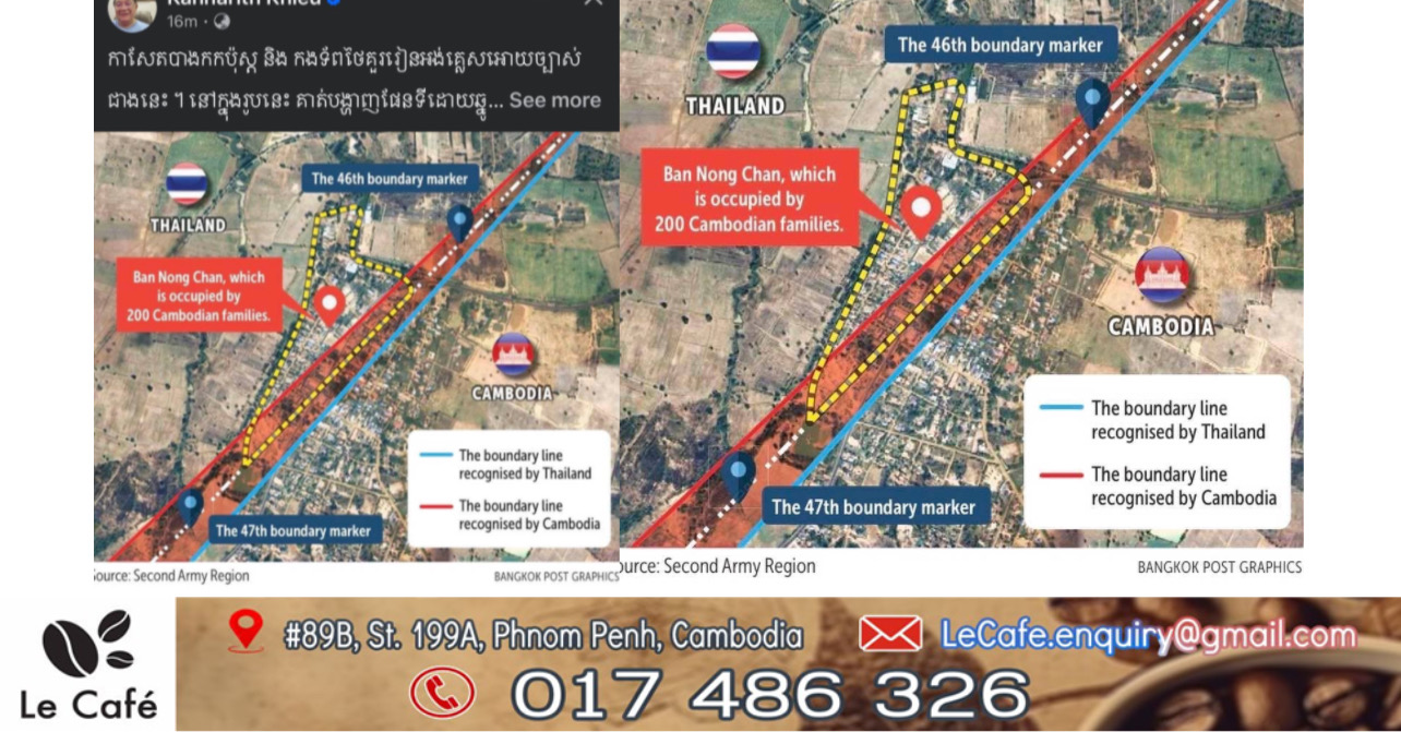 ឯបន្ទាត់ខៀវជាខ្សែព្រំដែនដែលគាត់គូសតែខ្លួនឯង ទទួលស្គាល់តែមួយអង្គឯង ហើយ សម្តេចតេជោតែងហៅថា «ផែនទីចោរ»នោះឯង – កាសែតបាងកកប៉ុស្ត ចេញផ្សាយថ្ងៃអង្គារ ១៩ សីហា ២០២៥៕ដោយ៖តារា