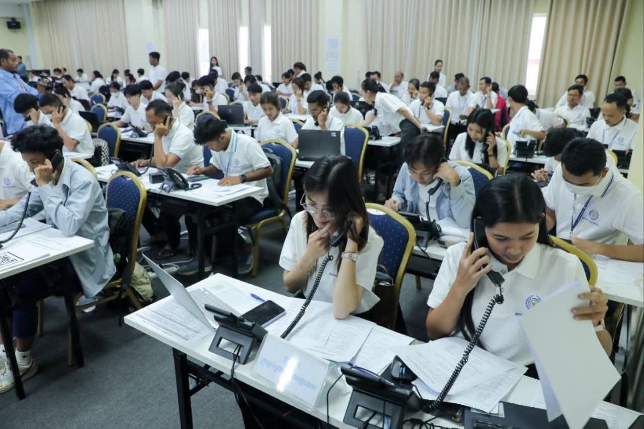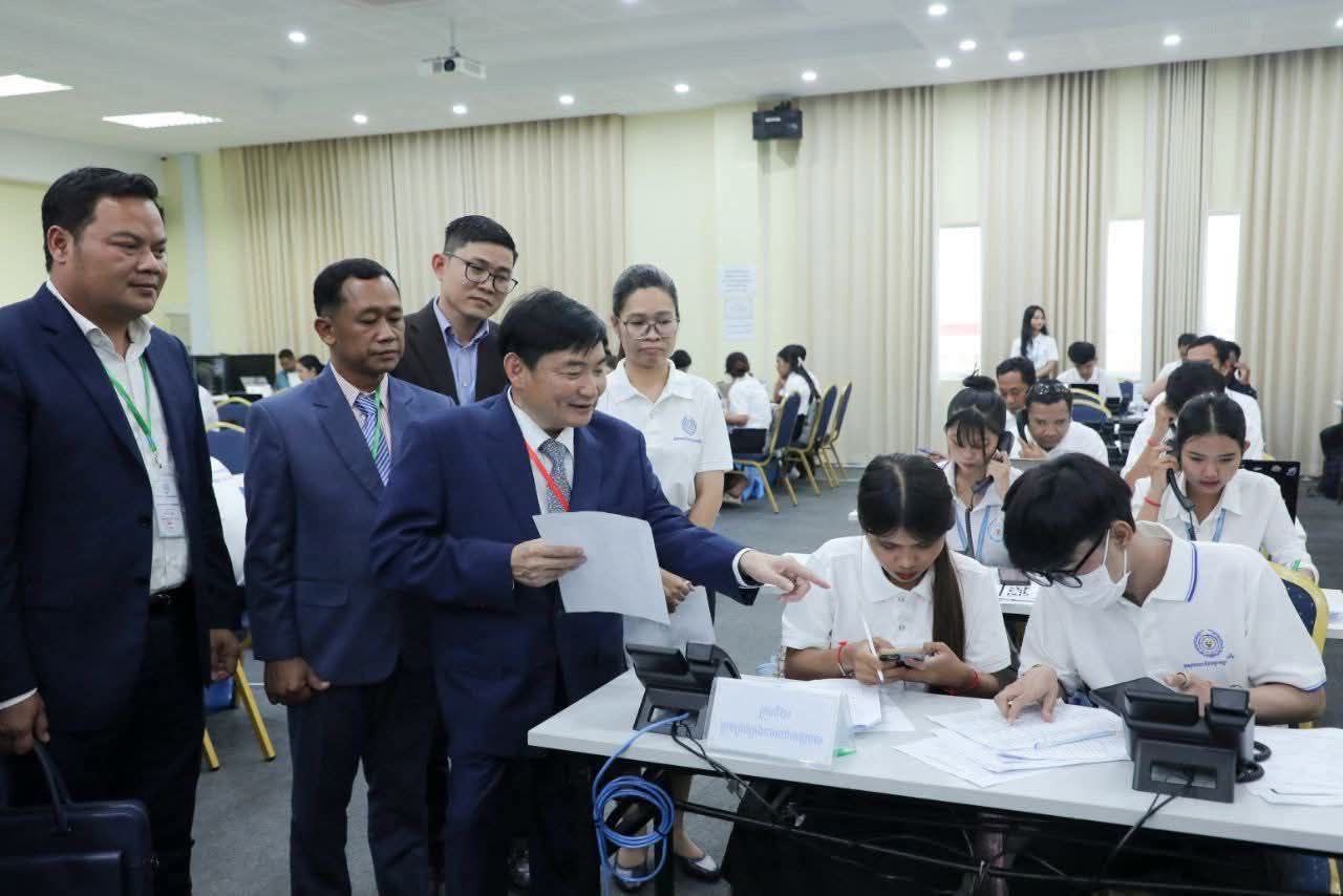 ភ្នំពេញ : លោក ហេង សួរ រដ្ឋមន្ត្រីក្រសួងការងារនិងបណ្ដុះបណ្ដាលវិជ្ជាជីវៈ និងជាប្រធានក្រុមប្រឹក្សាជាតិប្រាក់ឈ្នួលអប្បបរមា នាល្ងាចថ្ងៃទី២០ ខែសីហា ឆ្នាំ២០២៥ បានអញ្ជើញតំណាងអង្គការវិជ្ជាជីវៈរបស់និយោជក តំណាងអង្គការវិជ្ជាជីវៈរបស់កម្មករនិយោជិត និងអ្នកសារព័ត៌មានទៅទស្សនាបន្ទប់ផ្តល់ព័ត៌មាន២៤ម៉ោង តាមរយៈលេខទូរសព្ទ Hotline 1297 ដែលបម្រើដល់ការស្វែងរកការងារធ្វើរបស់បងប្អូនប្រជាពលរដ្ឋ ជាពិសេសពលករខ្មែរទើបមកពីប្រទេសថៃ។