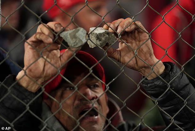 ខ្សែវីដេអូក៏បានបង្ហាញអ្នកគាំទ្រដុតកន្លែងអង្គុយ ខណៈដែលគ្រាប់បែកដៃត្រូវបានគប់ទៅរកកន្លែងដែលក្រុមគ្រួសាររបស់កីឡាករអង្គុយ។