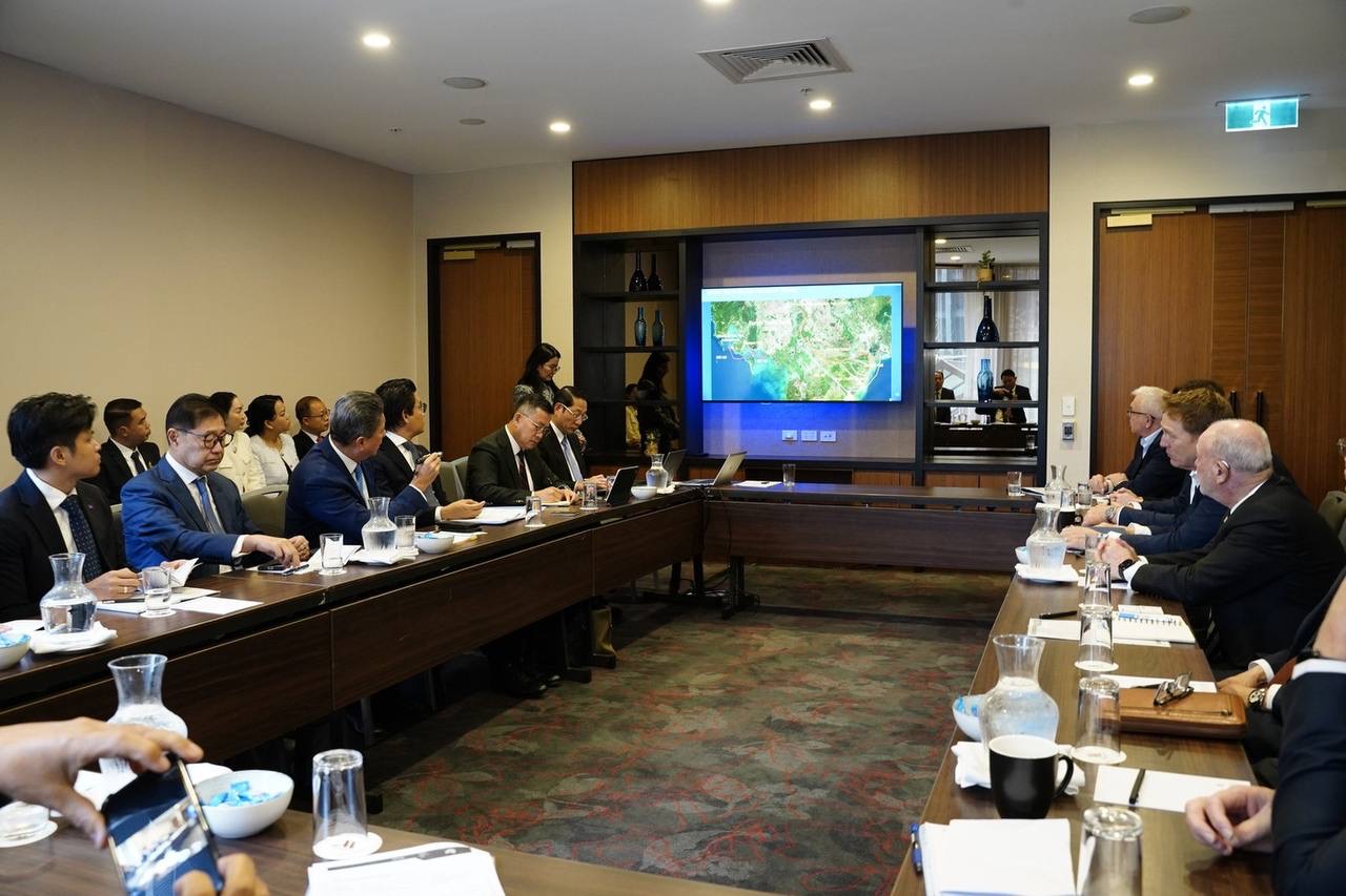 អូស្ត្រាលី៖ លោក ស៊ុន ចាន់ថុល ឧបនាយករដ្ឋមន្ត្រី អនុប្រធានទី១ ក្រុមប្រឹក្សាអភិវឌ្ឍន៍កម្ពុជា នាព្រឹកថ្ងៃចន្ទ ទី២៥ ខែសីហា ឆ្នាំ២០២៥ (ម៉ោងក្នុងតំបន់) បានអញ្ជើញជួបពិភាក្សាការងារជាមួយប្រតិភូក្រុមហ៊ុន CIMIC Group ដឹកនាំដោយលោក Robert Seidler សមាជិកក្រុមប្រឹក្សាភិបាលក្រុមហ៊ុន CIMIC Group។ ជំនួបពិភាក្សានេះមានការចូលរួមពីគណៈប្រតិភូអមដំណើរមានជាអាទិ៍ លោកឯកអគ្គរាជទូតកម្ពុជាប្រចាំប្រទេសអូស្ត្រាលី និងនូវែលហ្សេឡង់, លោកឯកអគ្គរដ្ឋទូតអូស្ត្រាលីប្រចាំកម្ពុជា, ព្រមទាំងថ្នាក់ដឹកនាំនៃក្រសួងស្ថាប័នរួមមានក្រុមប្រឹក្សាអភិវឌ្ឍន៍កម្ពុជា, ក្រសួងពាណិជ្ជកម្ម, ក្រសួងកសិកម្ម រុក្ខាប្រមាញ់ និងនេសាទ, ក្រសួងរ៉ែ និងថាមពល, ក្រសួងឧស្សាហកម្ម វិទ្យាសាស្ត្រ បច្ចេកវិទ្យា និងនវានុវត្តន៍ និងសមាសភាពពីសមាគមឧកញ៉ាកម្ពុជាជាច្រើនរូបផងដែរ។