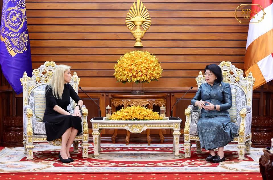 ភ្នំពេញ ៖ នៅក្នុងឱកាសទទួលជួបពិភាក្សាការងារជាមួយ សមាជិកសភាសហរដ្ឋអាមេរិក ដែលដឹកនាំ ដោយលោកស្រី បេត វ៉ាន់ ដាញ (Beth Van Duyne) នៅព្រឹកថ្ងៃទី២៨ ខែសីហា ឆ្នាំ២០២៥ នៅវិមានរដ្ឋសភា សម្តេចមហារដ្ឋសភាធិការធិបតី ឃួន សុដារី ប្រធានរដ្ឋសភានៃព្រះរាជាណាចក្រកម្ពុជា តាមរយៈគណៈប្រតិភូ បានស្នើជូន លោកប្រធានាធិបតី ដូណាល់ ត្រាំ បន្តចូលរួមលើកកម្ពស់ការអនុវត្តបទឈប់បាញ់ ឱ្យមានប្រសិទ្ធភាពខ្ពស់ និងចូលរួមស្វែងរកដំណោះស្រាយដោយសន្តិវិធី នៅក្នុងជម្លោះព្រំដែនកម្ពុជា-ថៃ ស្របតាមបំណងប្រាថ្នារបស់ថ្នាក់ដឹកនាំនិងពលរដ្ឋកម្ពុជា ដែលស្រឡាញ់សន្តិភាព ចង់ការពារសុខសន្តិភាព និងកិច្ចសហប្រតិបត្តិការល្អជាមួយបណ្តាប្រទេសជាតិទំាងអស់ ដើម្បីជំរុញការអភិវឌ្ឍប្រទេសជាតិ សម្រេចបានគោលដៅអភិវឌ្ឍន៍របស់ខ្លួន នៅឆ្នាំ២០៣០ និងឆ្នាំ២០២៥០។