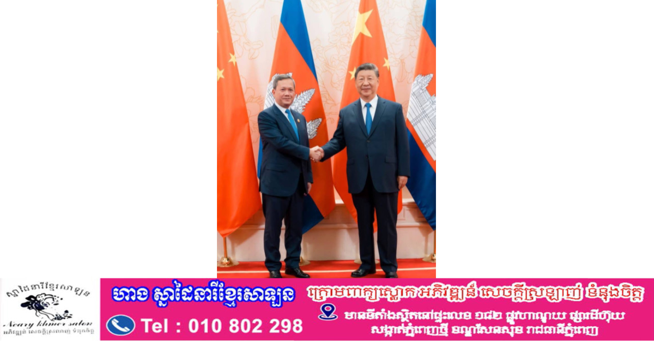 សាធារណរដ្ឋប្រជាមានិតចិន៖ នៅថ្ងៃសៅរ៍ ទី៣០ ខែសីហា ឆ្នាំ២០២៥នេះ សម្ដេចមហាបវរធិបតី ហ៊ុន ម៉ាណែត នាយករដ្ឋមន្ត្រីកម្ពុជា ជួបពិភាក្សាការងារជាមួយ លោក ស៊ី ជីនពីង ប្រធានាធិបតីនៃសាធារណរដ្ឋប្រជាមានិតចិន ដើម្បីបន្តពង្រឹងកិច្ចសហប្រតិបត្តិការលើគ្រប់វិស័យរវាងប្រទេសទាំងពីរកម្ពុជា-ចិន។
