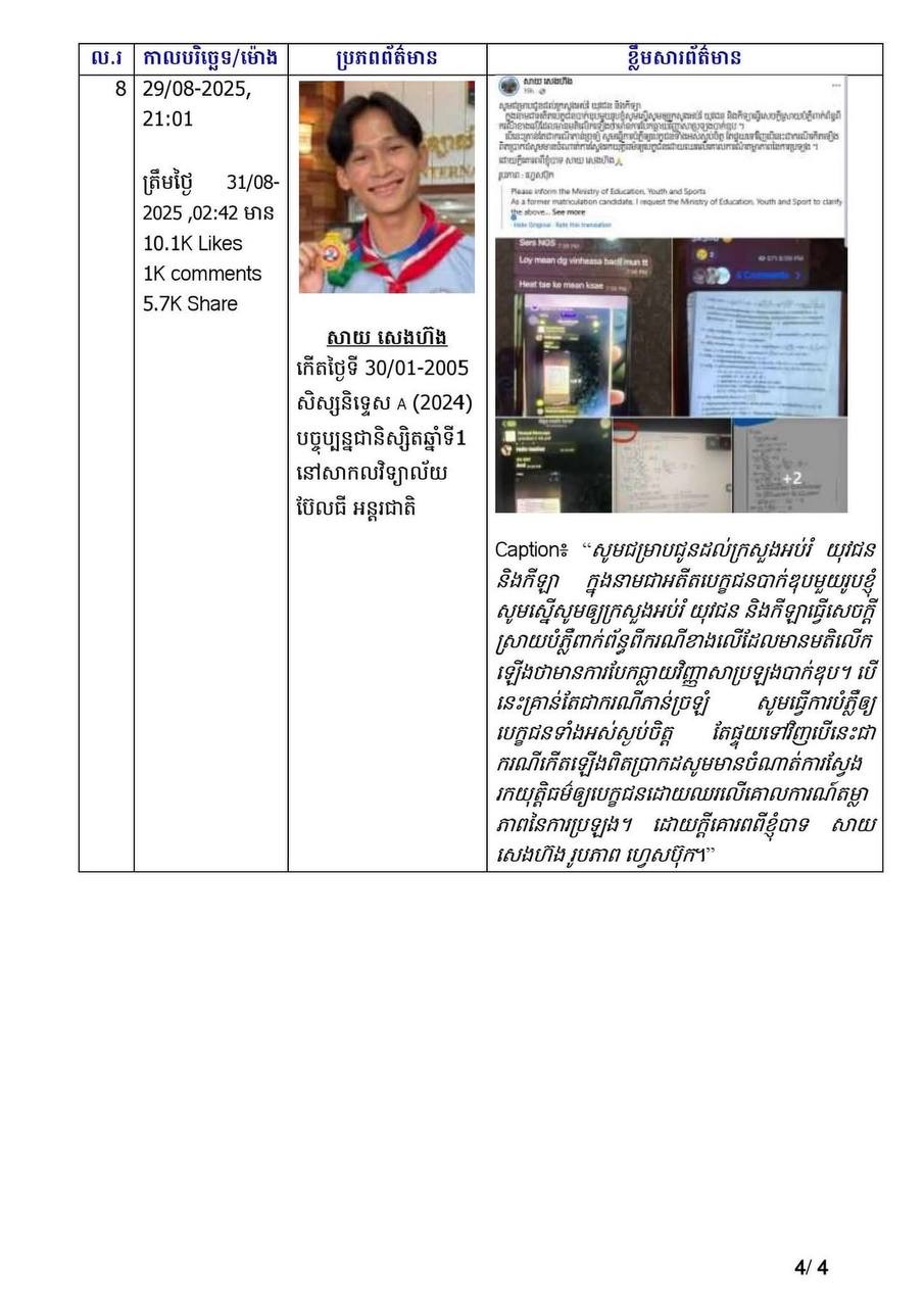 ACU បញ្ជាក់ថា ៖ ក្រុមការងារបានចាប់ដំណើរការស្រាវជ្រាវករណីខាងលើនេះចាប់ពីថ្ងៃទី 29/08-2025 ម៉ោង 21:30 នាទី រកឃើញថា៖