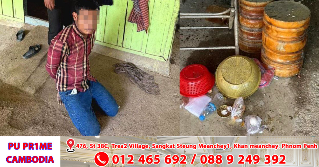 ការឃាត់ខ្លួនកូនប្រុសចិត្តសាហាវគំរាមកំហែងឪពុក ម្តាយ បានកាលពីថ្ងៃទី៣០ ខែសីហា ឆ្នាំ២០២៥ នៅក្នុងភូមិឡានឆេះ ឃុំព្រៃក្រសាំង ស្រុកសាមគ្គីមុនីជ័យ ខេត្តកំពង់ស្ពឺ។
