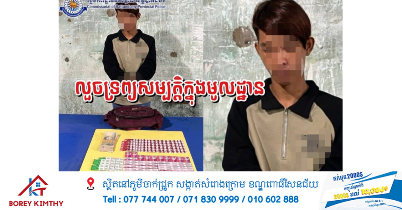 កាលពីថ្ងៃទី០៤ ខែកញ្ញា ឆ្នាំ២០២៥ វេលាម៉ោងប្រហែល០២រំលងអាធ្រាត នៅចំណុចក្រុមទី០៩ ភូមិថ្នល់បត់ ឃុំឫស្សីក្រាំង ស្រុកមោងឫស្សី ខេត្តបាត់ដំបង កម្លាំងប៉ុស្តិ៍នគរបាលរដ្ឋបាលឫស្សីក្រាំង បានទទួលបណ្ដឹង មានករណីលួច (ទ្រព្យសម្បត្តិ) មួយកើតឡើង ប្រព្រឹត្តដោយជនសង្ស័យ មិនស្គាល់អត្តសញ្ញាណ បានធ្វើសកម្មភាពចូលលួចកាបូបលុយ របស់ជនរងគ្រោះឈ្មោះ លៀង គន្ធា ភេទស្រី អាយុ៣៧ឆ្នាំ មុខរបរលក់ចាប់ហួយ រស់នៅភូមិថ្នលបត់ ឃុំឫស្សីក្រាំង ស្រុកមោងឫស្សី ខេត្តបាត់ដំបង ដែលបានទុកក្បែរខ្លួនរួចសំរាកលង់លក់ លុះព្រឹងឡើងវេលាម៉ោងប្រហែល០៥ព្រឹក ភ្ញាក់ពីដំដេកទើបដឹងថាបាត់កាបូបលុយ ។ សម្ភារៈដែលបាត់បង់រួមមាន៖ កាបូបលុយពណ៌ឈាមជ្រូកចំនួន០១, លុយខ្មែរប្រហែលចំនួន ២០០០០០០៛ (ពីរលានរៀល), កាតទូរស័ព្ទប្រហែល១៩០សន្លឹក(មានកាត់metfone និងកាតsmart ), អត្តសញ្ញាណបណ្ណ័សញ្ជាតិខ្មែរចំនួន០២សន្លឹក និងក្រវិលកំប៉ុង០១ចំនួន ដែលទុកក្នុងកាបូបនោះ ។
