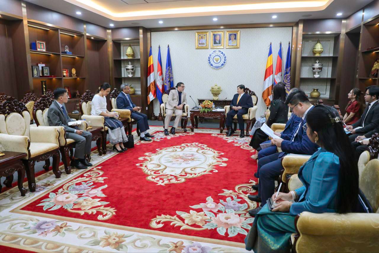 ភ្នំពេញ៖ លោក ហេង សួរ រដ្ឋមន្រ្តីក្រសួងការងារ និងបណ្តុះបណ្តាលវិជ្ជាជីវៈ បានអនុញ្ញាតឱ្យលោក អេនរីកូ ហ្គាវេលីយ៉ា (Enrico Gaveglia) តំណាងថ្មីរបស់កម្មវិធីអភិវឌ្ឍន៍សហប្រជាជាតិ (UNDP) ប្រចាំព្រះរាជាណាចក្រកម្ពុជា និងសហការី ចូលជួបសម្តែងការគួរសម និងពិភាក្សាការងារ នារសៀលថ្ងៃទី១១ ខែកញ្ញា ឆ្នាំ២០២៥ នៅទីស្តីការក្រសួងការងារ ក្នុងបំណងដើម្បីផ្លាស់ប្ដូរយោបល់អំពីកិច្ចសហប្រតិបត្តិការរវាង ក្រសួងការងារ និងបណ្តុះបណ្តាលវិជ្ជាជីវៈ និង UNDP ខណៈដែលលោកទើបត្រូវបានតែងតាំងថ្មី។