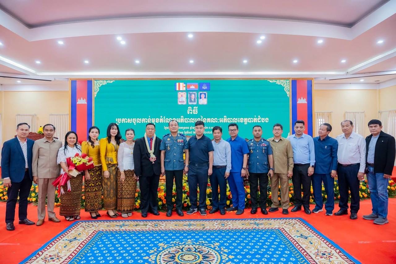 ខេត្តបាត់ដំបង៖ លោកសន្តិបណ្ឌិត ម៉ៅ ច័ន្ទតារា រដ្ឋលេខាធិការប្រចាំការក្រសួងមហាផ្ទៃ តំណាងដ៏ខ្ពង់ខ្ពស់ លោកអភិសន្តិបណ្ឌិត ស សុខា ឧបនាយករដ្ឋមន្ត្រី រដ្ឋមន្ត្រីក្រសួងមហាផ្ទៃ បានអញ្ជើញជាអធិបតីក្នុងពិធីប្រកាសចូលកាន់មុខតំណែងអភិបាលរងថ្មី នៃគណៈអភិបាលខេត្តបាត់ដំបង។
