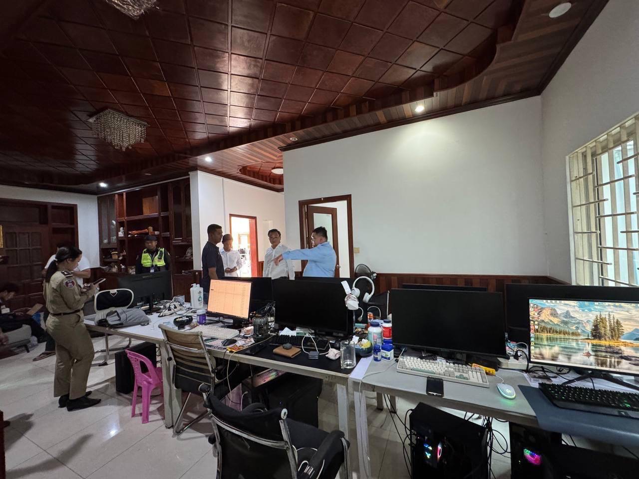 ភ្នំពេញ៖ កម្លាំងសម្ថកិច្ចចម្រុះគណៈបញ្ជាការឯកភាពរដ្ឋបាលខណ្ឌចំការមន និង ខណ្ឌច្បារអំពៅ និងសមត្ថកិច្ចជំនាញ នៃស្នងការដ្ឋាននគរបាលរាជធានីភ្នំពេញ ដោយមានការសម្របសម្រួលផ្លូវច្បាប់ពី ព្រះរាជអាជ្ញារងនៃអយ្យការអមសាលាដំបូងរាជធានីភ្នំពេញ នៅថ្ងៃទី១៧ ខែកញ្ញា ឆ្នាំ២០២៥នេះ បានចុះត្រួតពិនិត្យ ទីតាំងចំនួន០២កន្លែង ដែលសង្ស័យ Online Scames។