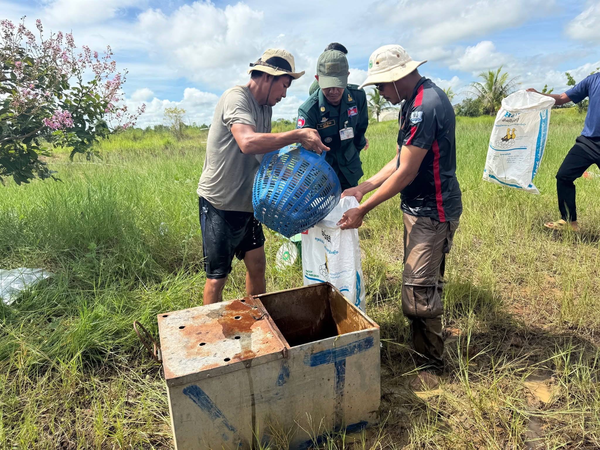 ខេត្តឧត្តរមានជ័យ៖ ក្រុមការងារមន្ទីរកសិកម្ម រុក្ខាប្រមាញ់ និងនេសាទ ខេត្តឧត្តរមានជ័យ នៅថ្ងៃទី១ ខែតុលា ឆ្នាំ២០២៥ បានបន្តចុះប្រមូលផលត្រី និងស៊ុតទា ដែលបានចិញ្ចឹមនៅស្ថានីយ៍កសិកម្មកូនក្រៀល ដើម្បីយកទៅជូនដល់ វីរកងទ័ពប្រចាំការនៅគោលដៅទិសខេត្តឧត្តរមានជ័យ សម្រាប់ជាស្បៀងបរិភោគដែលមាន ស៊ុតទា ចំនួន៨៤០គ្រាប់ និងត្រីអណ្តែងចំនួន ៥៤គីឡូក្រាម។