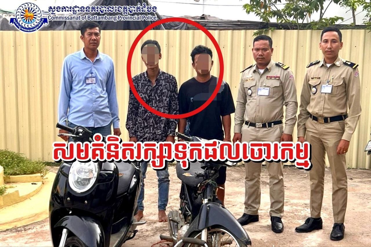 ខេត្តបាត់ដំបង÷អ្នកសមគំនិតលួចលាក់រក្សាទុកផលនៃអំពើចោរកម្មករណីលួចកាច់សោកម៉ូតូ២នាក់ទៀត ត្រូវបាននគរបាលស្រុកគាស់ក្រឡ និងស្រុកមោងឫស្សីសហការគ្នានាំខ្លួនបន្ទាប់ពីសមត្ថកិច្ចព្យាយាមស្រាវជ្រាវក្នុង ករណីនេះដោយស្ងៀមស្ងាត់ ក្នុងអំឡុងរយៈ ពេលប្រមាណ០៣សប្តាហ៍កន្លងមក។