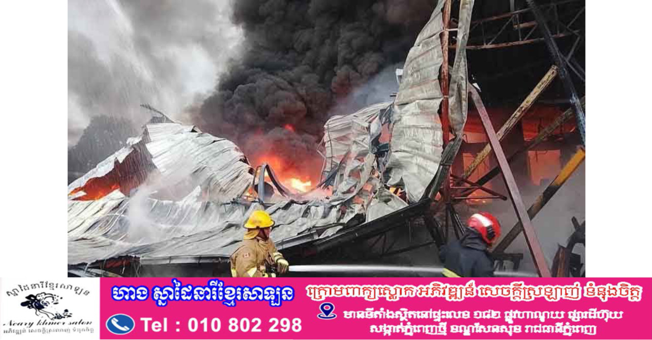 ប្រទេសថៃ : រោងចក្រផលិតប្រអប់-ចានស្នោដ៏ធំមួយនៅប្រទេសថៃ ត្រូវរន្ទះបាញ់បង្កជាអគ្គិភ័យឆាបឆេះយ៉ាងសន្ធោសន្ធៅ ឈានដល់ការបាក់រលំអគារនិងជម្លៀសមនុស្សចេញជាបន្ទាន់។