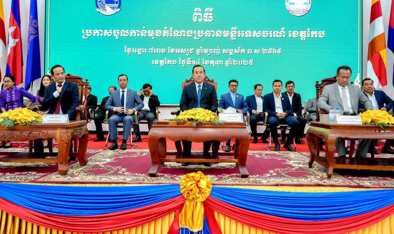 ខេត្តកែប៖ លោក ហួត ហាក់ រដ្ឋមន្ត្រីក្រសួងទេសចរណ៍ អញ្ជើញជាអធិបតីភាពក្នុងពិធីប្រកាសចូលកាន់មុខតំណែង លោក ប៉ុក ទាំង ជាប្រធានមន្ទីរទេសចរណ៍ខេត្តកែប នៅសាលាខេត្តកែប កាលពីរសៀលថ្ងៃទី១៤ ខែតុលា ឆ្នាំ២០២៥ ដោយមានការចូលរួមពីសំណាក់ លោក អ៊ុក ថា ប្រធានក្រុមប្រឹក្សាខេត្តកែប លោកបណ្ឌិត សោម ពិសិដ្ឋ អភិបាលនៃគណៈអភិបាលខេត្តកែប រួមទាំងលោក លោកស្រី ថ្នាក់ដឹកនាំក្រសួងទេសចរណ៍ និងប្រតិភូអមដំណើរ លោក លោកស្រី អភិបាលរងខេត្ត លោកប្រធានសាលាដំបូងខេត្ត លោកព្រះរាជអាជ្ញា នៃអយ្យការអមសាលាដំបូងខេត្ត លោក មេបញ្ជាការកងកម្លាំងប្រដាប់អាវុធទាំង៣ លោក លោកស្រី ប្រធានមន្ទីរ អង្គភាពជុំវិញខេត្ត លោកអភិបាលក្រុង ស្រុក ព្រមទាំងអាជីវករ សរុបប្រមាណ ៣០០នាក់ ។