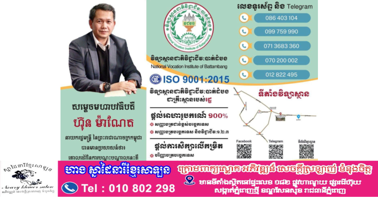 ភ្នំពេញ៖ វិទ្យាស្ថានជាតិវិជ្ជាជីវៈបាត់ដំបង នៃក្រសួងការងារ និងបណ្តុះបណ្តលវិជ្ជាជីវៈ ផ្តល់អាហារូបករណ៍ចំនួន ១ ៤០០កន្លែង លើ ២១មុខជំនាញ ដល់យុវជនមកពីគ្រួសារក្រីក្រ និងគ្រួសារងាយរងហានិភ័យ ព្រមទាំងផ្ដល់ប្រាក់ឧបត្ថម្ភប្រចាំខែក្រោមកម្មវិធីបណ្តុះបណ្តាលជំនាញវិជ្ជាជីវៈ និងបច្ចេកទេសដល់យុវជនមកពីគ្រួសារក្រីក្រ និងគ្រួសារងាយរងហានិភ័យ (TVET 1.5M)។ សម្រាប់ប្រជាពលរដ្ឋ និងយុវជន ដែលមិនមែនជាក្រុមគោលដៅ ក៏អាចស្នើចុះឈ្មោះចូលសិក្សាបានដោយឥតគិតថ្លៃផងដែរ ប៉ុន្តែមិនទទួលបានប្រាក់ឧបត្ថម្ភនោះឡើយ។