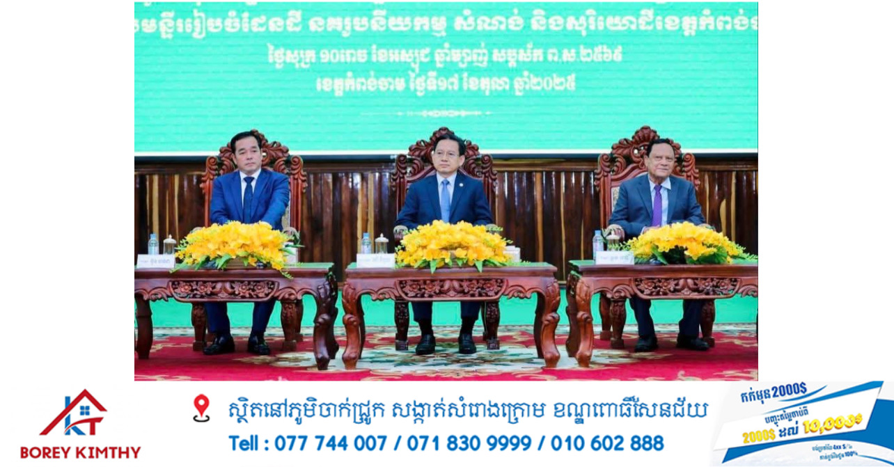ការថ្លែងបែបនេះក្នុងឱកាសដែលលោកអញ្ជើញក្នុងពិធីបិទអង្គសន្និបាតបូកសរុបលទ្ធផលការងារឆ្នាំ២០២៥ និងទិសដៅឆ្នាំ២០២៦ របស់មន្ទីររៀបចំដែនដី នគរូបនីយកម្ម សំណង់ និងសុរិយោដីខេត្តកំពង់ចាម នាព្រឹកថ្ងៃទី១៧ ខែតុលា ឆ្នាំ២០២៥ ក្រោមអធិបតីភាព លោក ម៉ៅ វិបុល អនុរដ្ឋលេខាធិការក្រសួង រៀបចំដែនដី នគរូបនីយកម្ម និងសំណង់ និងលោក ខ្លូត ផន ប្រធានក្រុមប្រឹក្សាខេត្តកំពង់ចាម ។