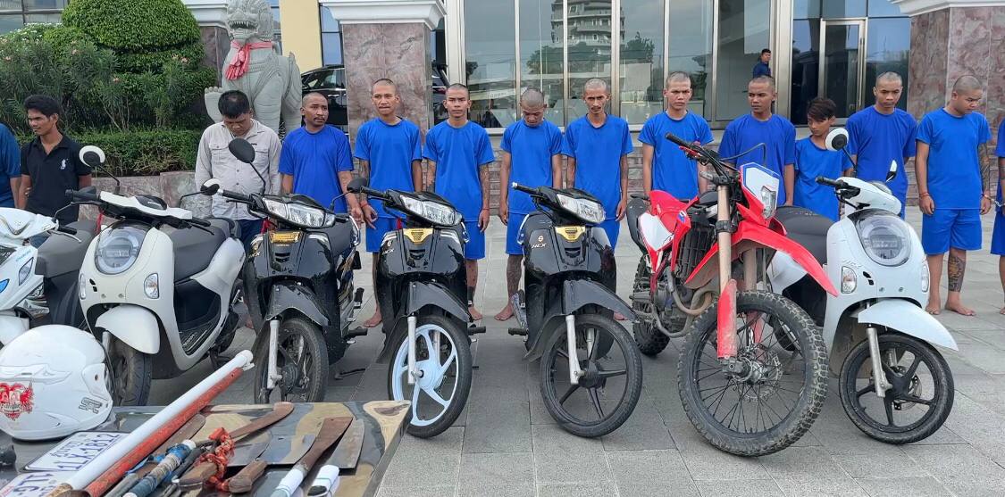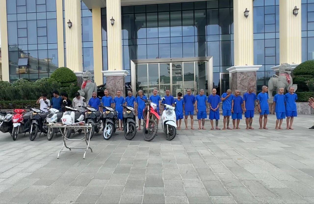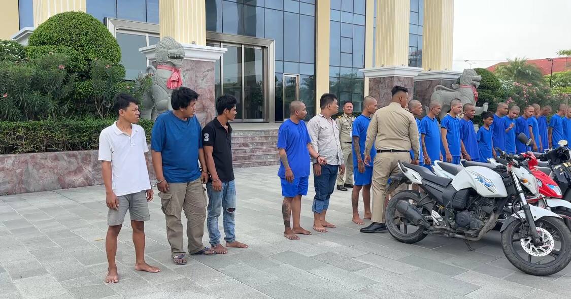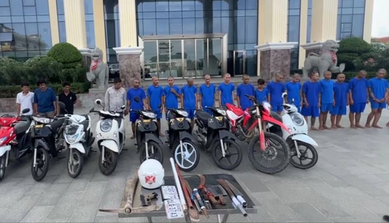 ក្នុងនោះដកហូតវត្ថុតាងរួមមាន ចបជីក , ដងឆ័ត្រ , ត្រសេះ , កាំបិតផ្គាក់ , កាំបិតបុ័ងតោ , ដាវសាំម៉រ៉ៃ , កាំបិតចុងស្រួច , កាំភ្លើងហ្គាស ( ប្រើគ្រាប់កង់ ) , មួកសុវត្ថិភាព , ស្លាកលេខចំនួន ២ នឹងម៉ូតូចំនួន ១០គ្រឿង ៕